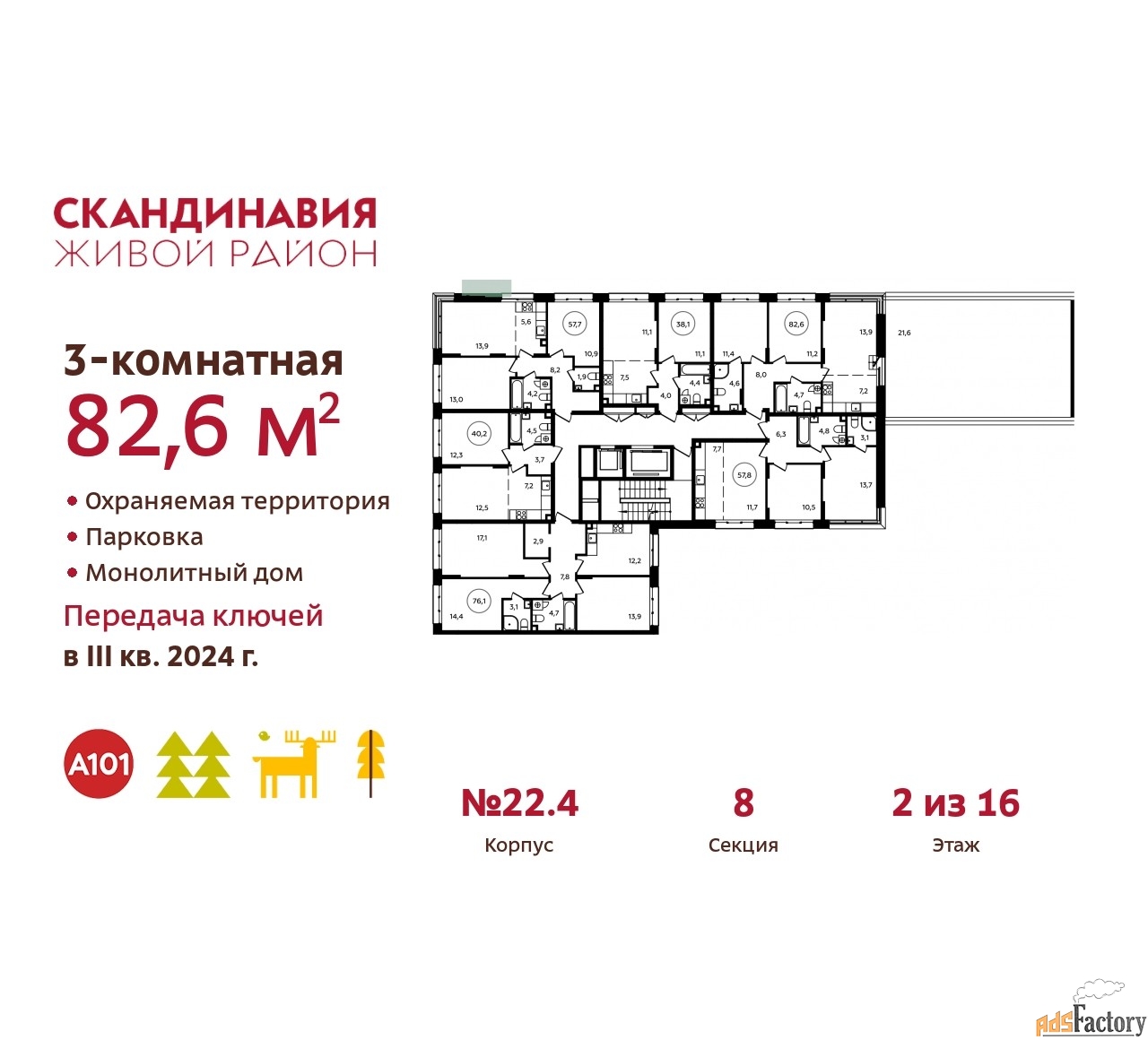 Артикул квартиры по базе застройщика 23К-22.4-509.