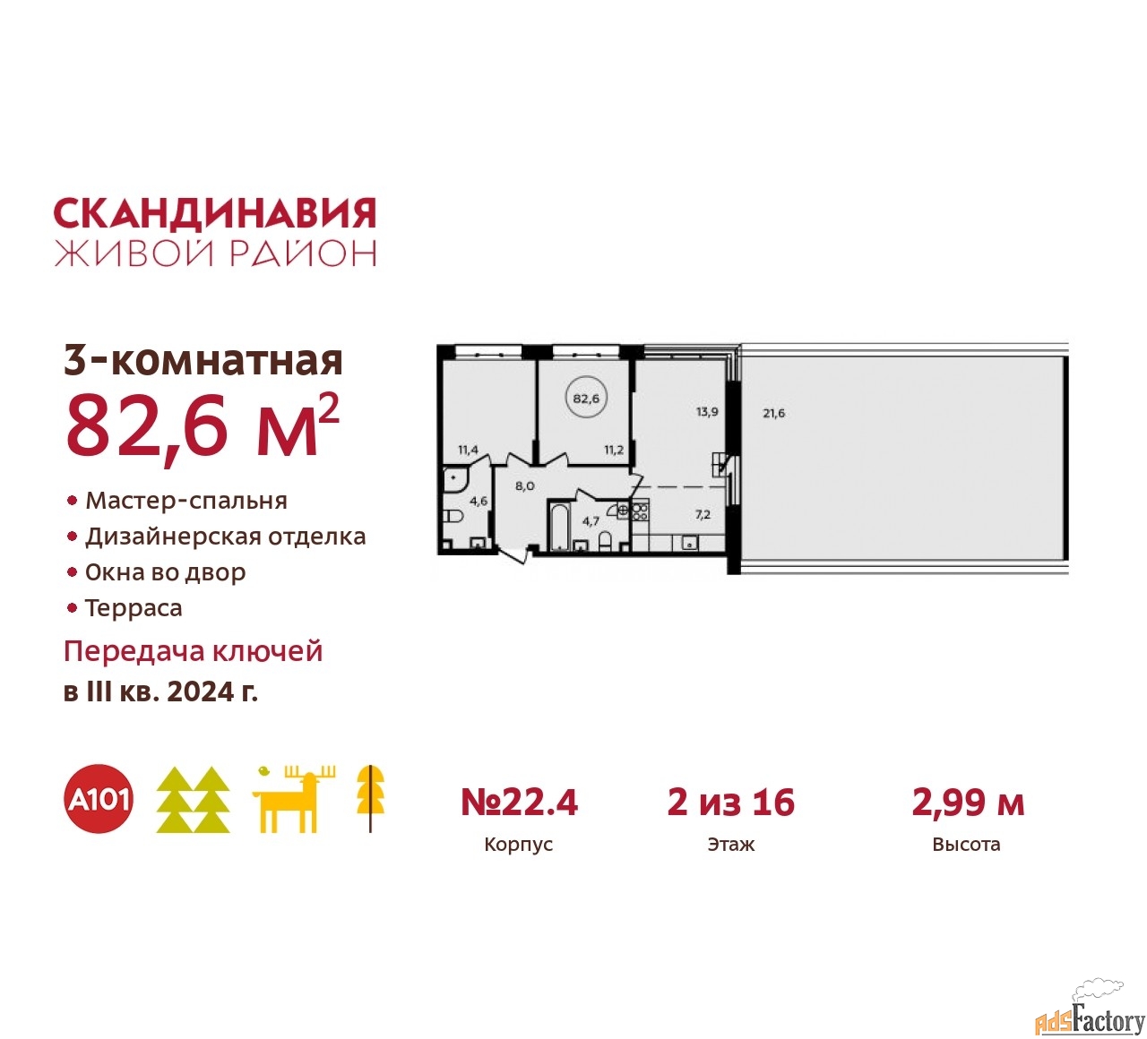 ЖК Скандинавия — жилой квартал в Новой Москве от ГК «А101». ЖК Скандинавия включает 19 монолитных жилых домов разной этажности (7-16 этажей). Жилой комплекс расположен в 6,5 км от МКАД в поселке Коммунарка.