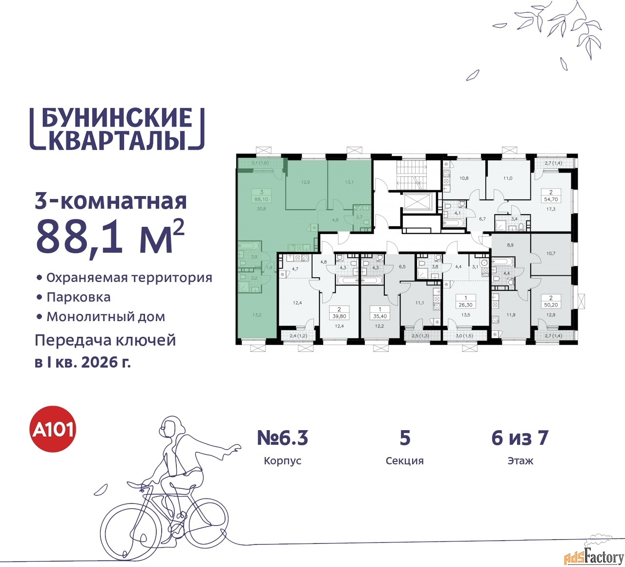 Дом монолитный, двухподъездный, высотой 7 этажей. Квартира находится во 2-й секции в корпусе бизнес-класса 6.3. На этаже 6 квартир. В подъезде 1 грузовой лифт. Начало строительства - 3 квартал 2023 года. Окончание строительства - 1 квартал 2026 года. Оформление сделки по договору долевого участия.