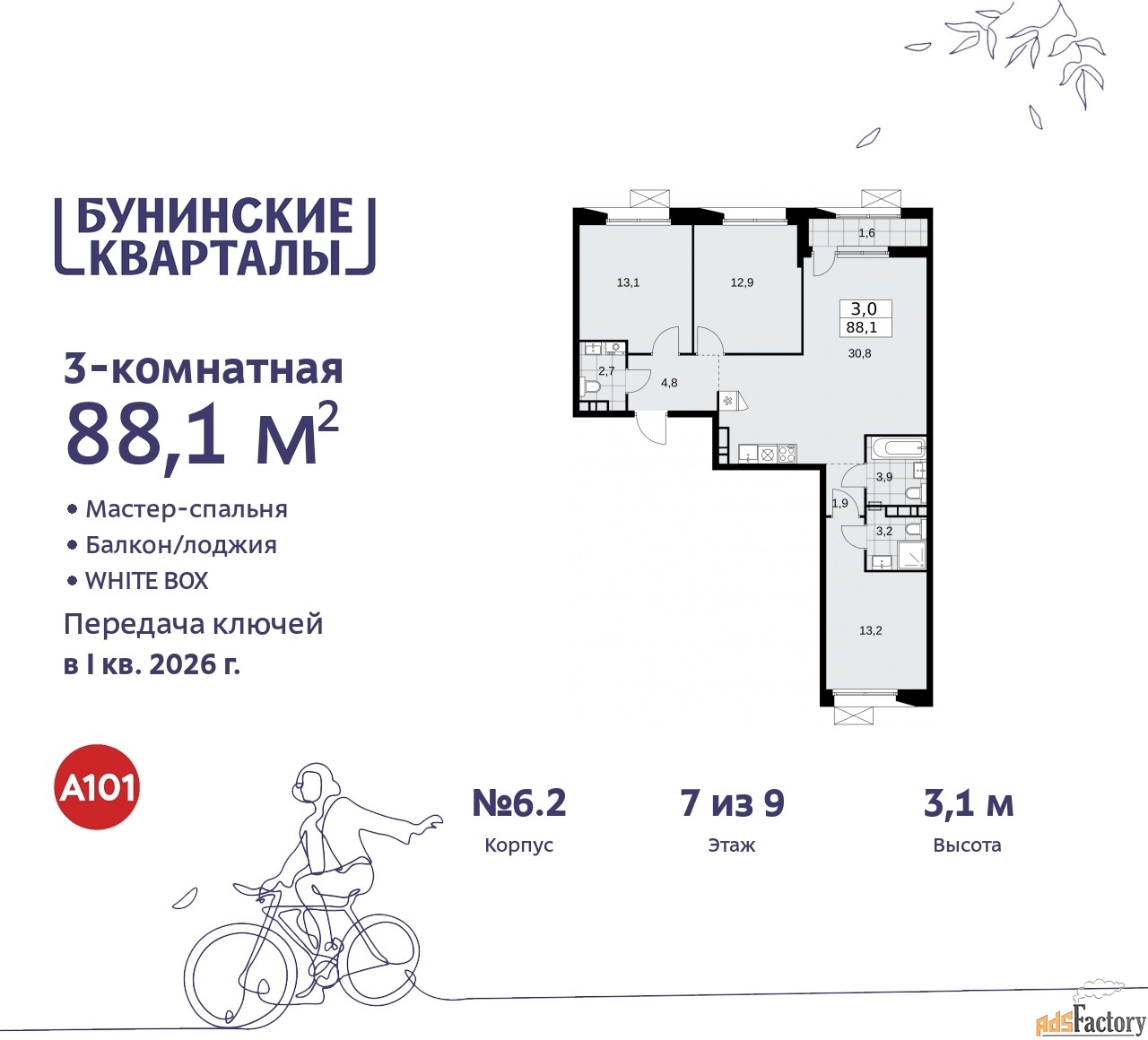 | Общая площадь (кв.м) | 88.1 |