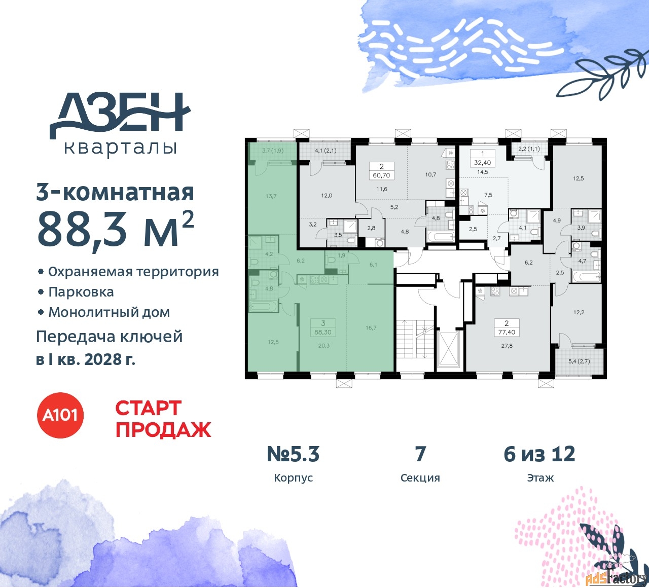| Общая площадь (кв.м) | 88.3 |