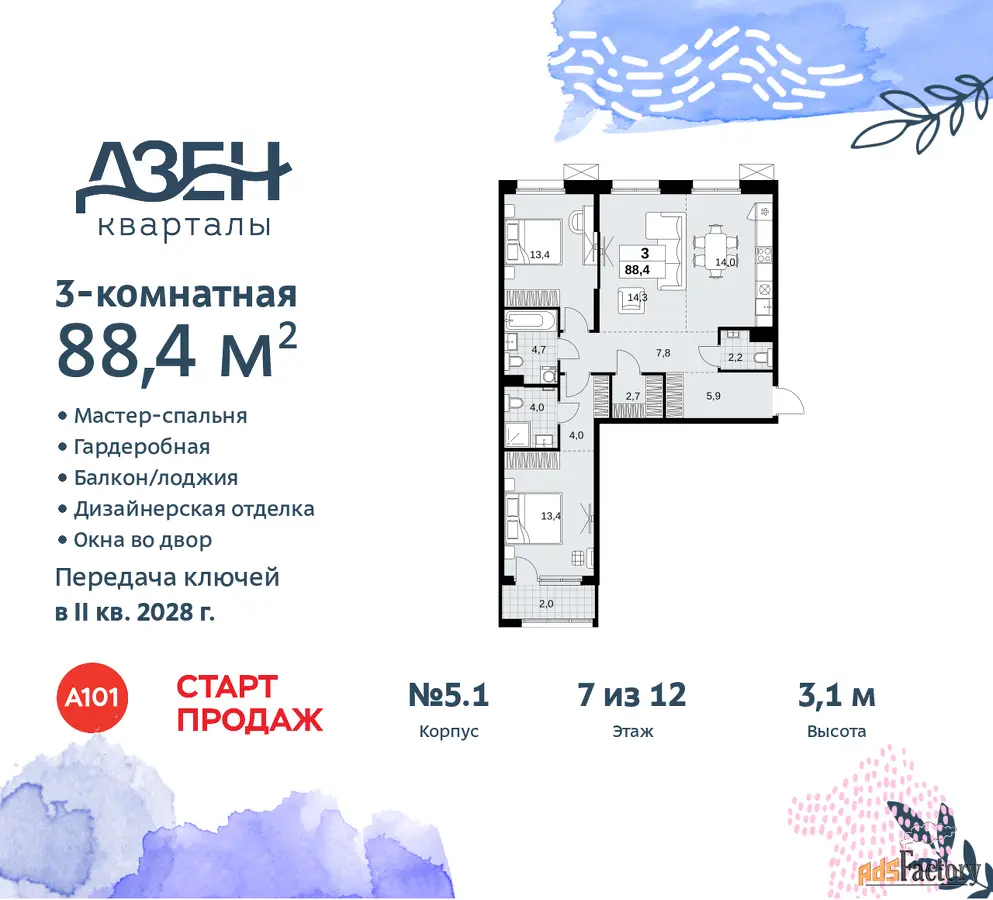 | Общая площадь (кв.м) | 88.4 |