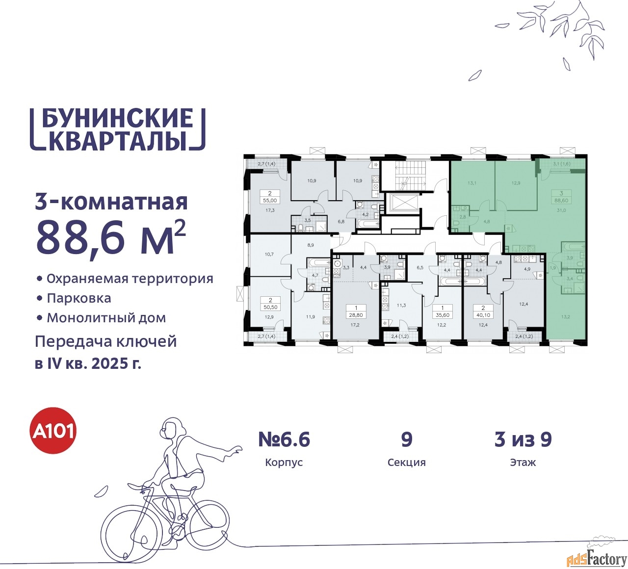 Дом монолитный, двухподъездный, высотой 9 этажей. Квартира находится в 1-й секции в корпусе бизнес-класса 6.6. На этаже 6 квартир. В подъезде 1 грузовой лифт. Начало строительства - 3 квартал 2023 года. Окончание строительства - 4 квартал 2025 года. Оформление сделки по договору долевого участия.