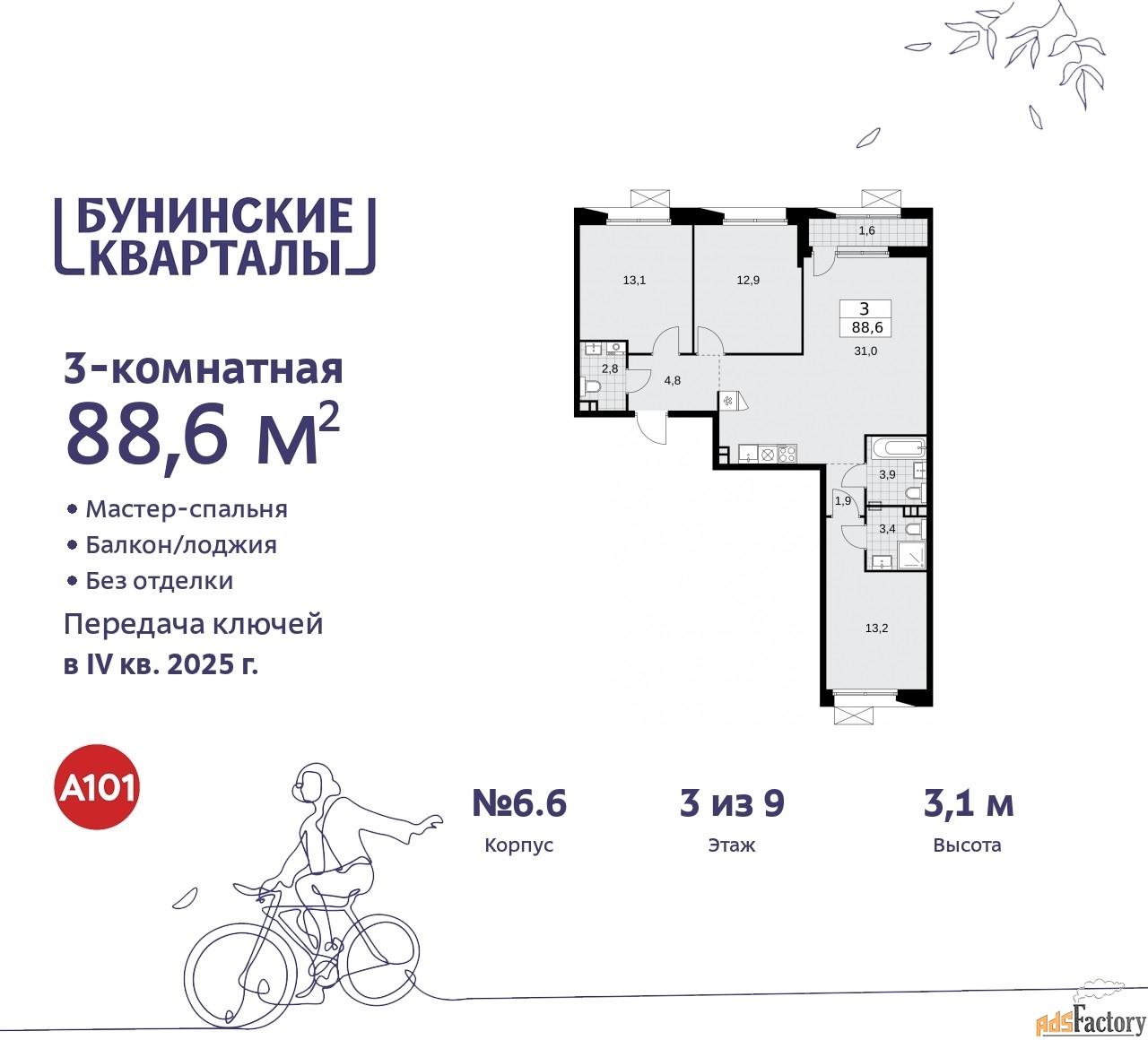 Артикул квартиры по базе застройщика 14К-6.6-583.
