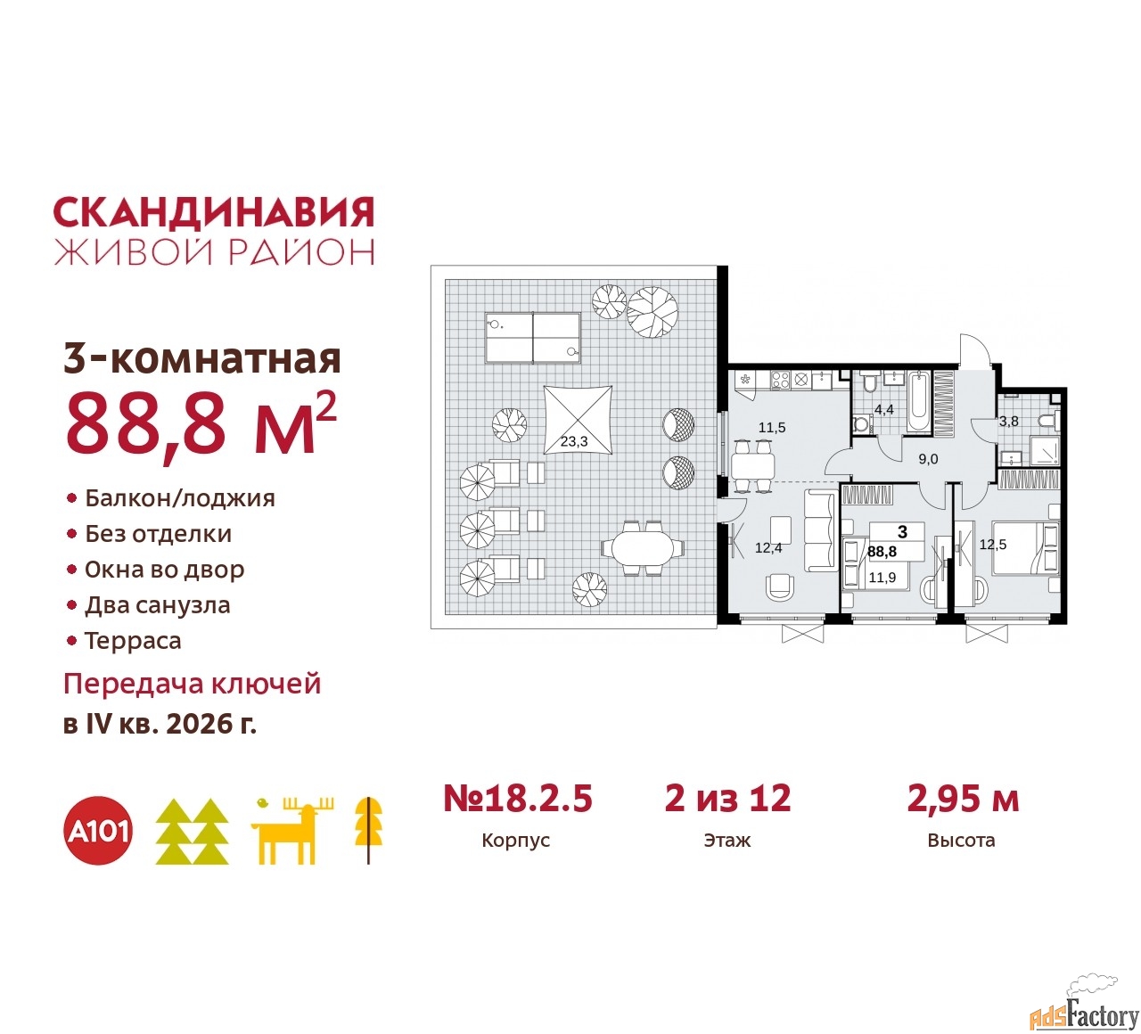 | Общая площадь (кв.м) | 88.8 |
