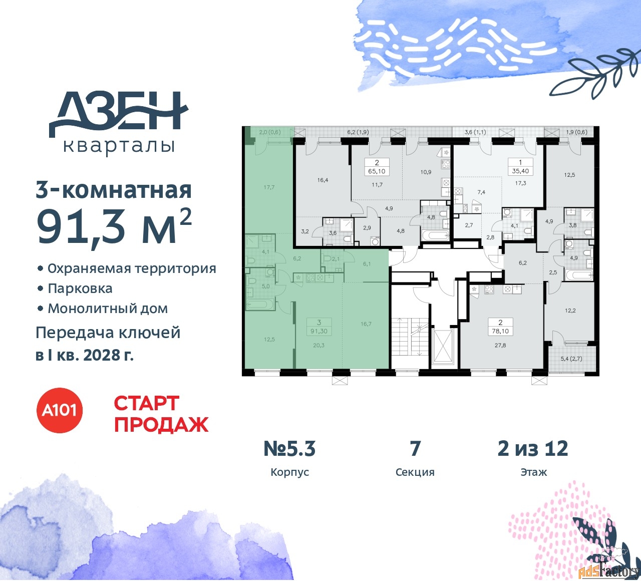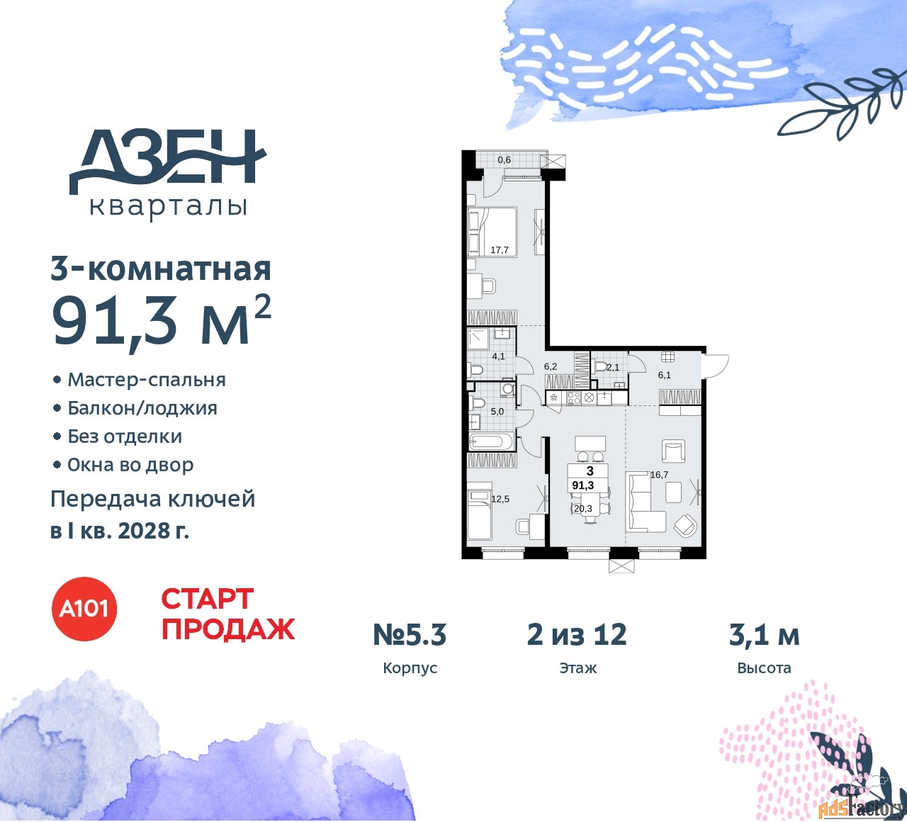 | Общая площадь (кв.м) | 91.3 |