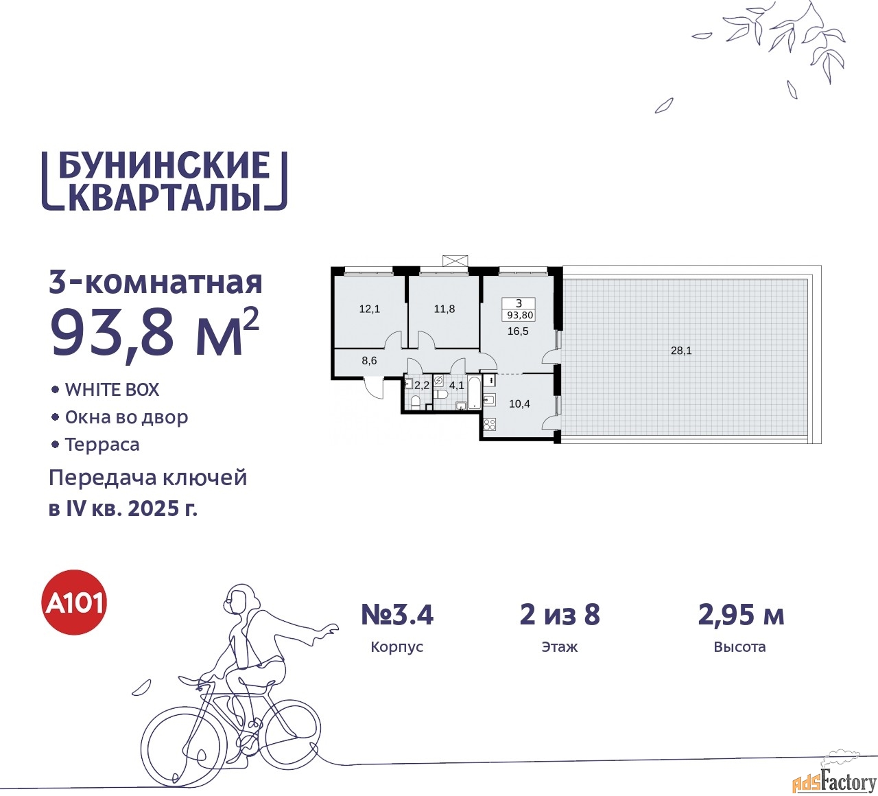 Дом монолитный, двухподъездный, высотой 8 этажей. Квартира находится во 2-й секции в корпусе 3.4. На этаже 6 квартир. В подъезде 1 грузовой лифт. Начало строительства - 2 квартал 2023 года. Окончание строительства - 4 квартал 2025 года. Оформление сделки по договору долевого участия.