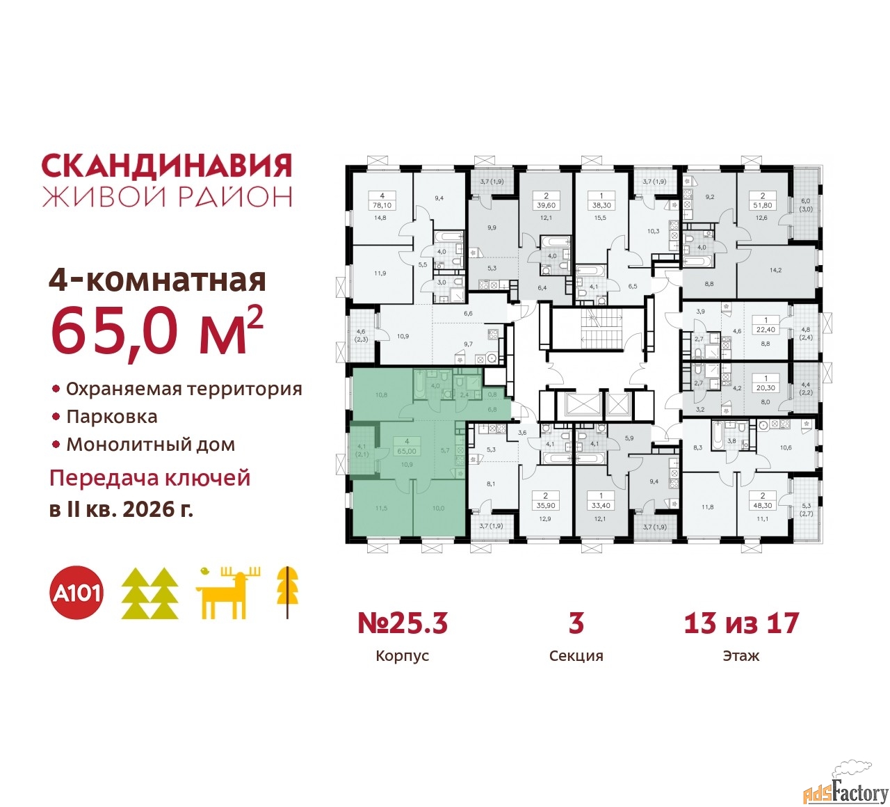 Артикул квартиры по базе застройщика 24К-25.3-421.