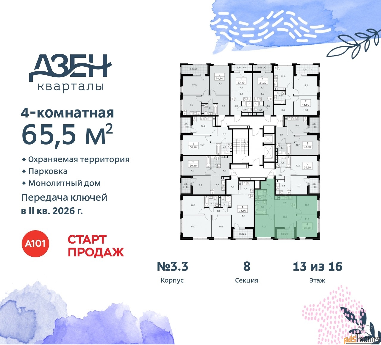 Квартира находится в корпусе 3.3. Дом монолитный, одноподъездный, высотой 16 этажей. На этаже 10 квартир. В подъезде 1 пассажирский и 1 грузовой лифт. Окончание строительства - 2 квартал 2026 года. Оформление сделки по договору долевого участия.