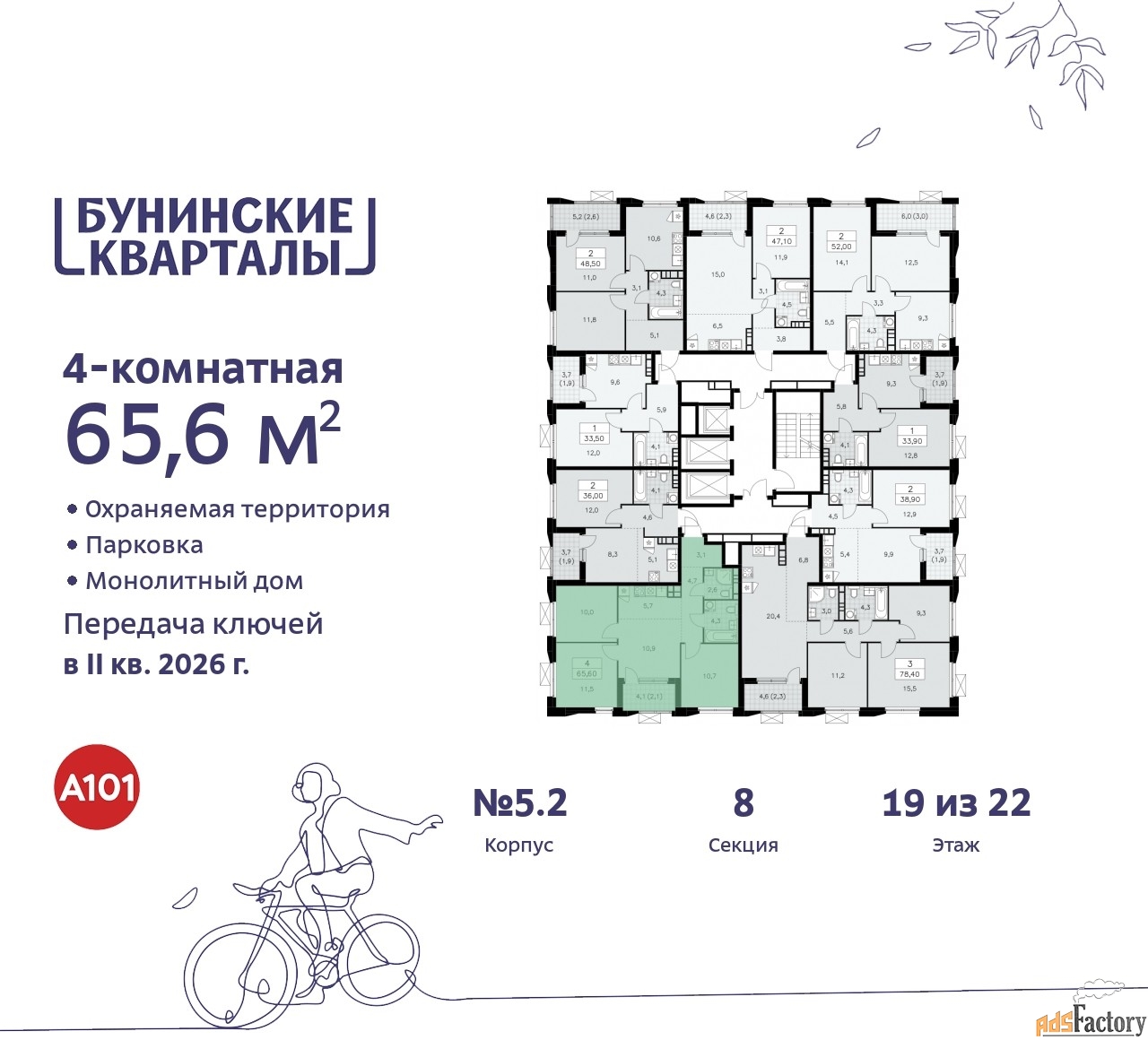 Квартира находится в корпусе 5.2. Дом монолитный, одноподъездный, высотой 22 этажа. На этаже 9 квартир. В подъезде 1 пассажирский и 2 грузовых лифта. Начало строительства - 4 квартал 2023 года. Окончание строительства - 2 квартал 2026 года. Оформление сделки по договору долевого участия.