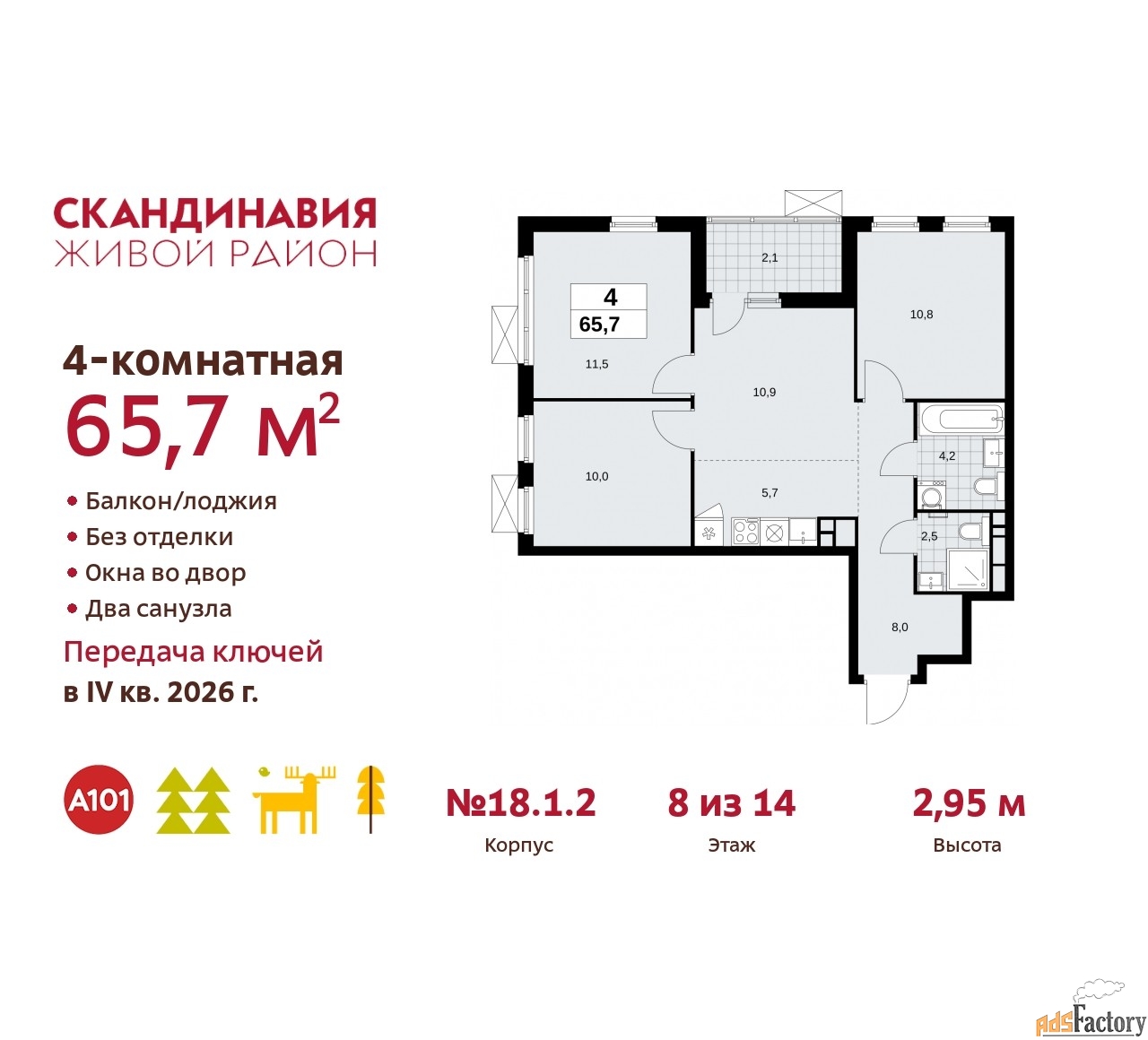 Квартира находится в корпусе 2.18.1.2. Дом монолитный, одноподъездный, высотой 14 этажей. На этаже 10 квартир. В подъезде 1 пассажирский и 1 грузовой лифт. Начало строительства - 1 квартал 2024 года. Окончание строительства - 4 квартал 2026 года. Оформление сделки по договору долевого участия.
