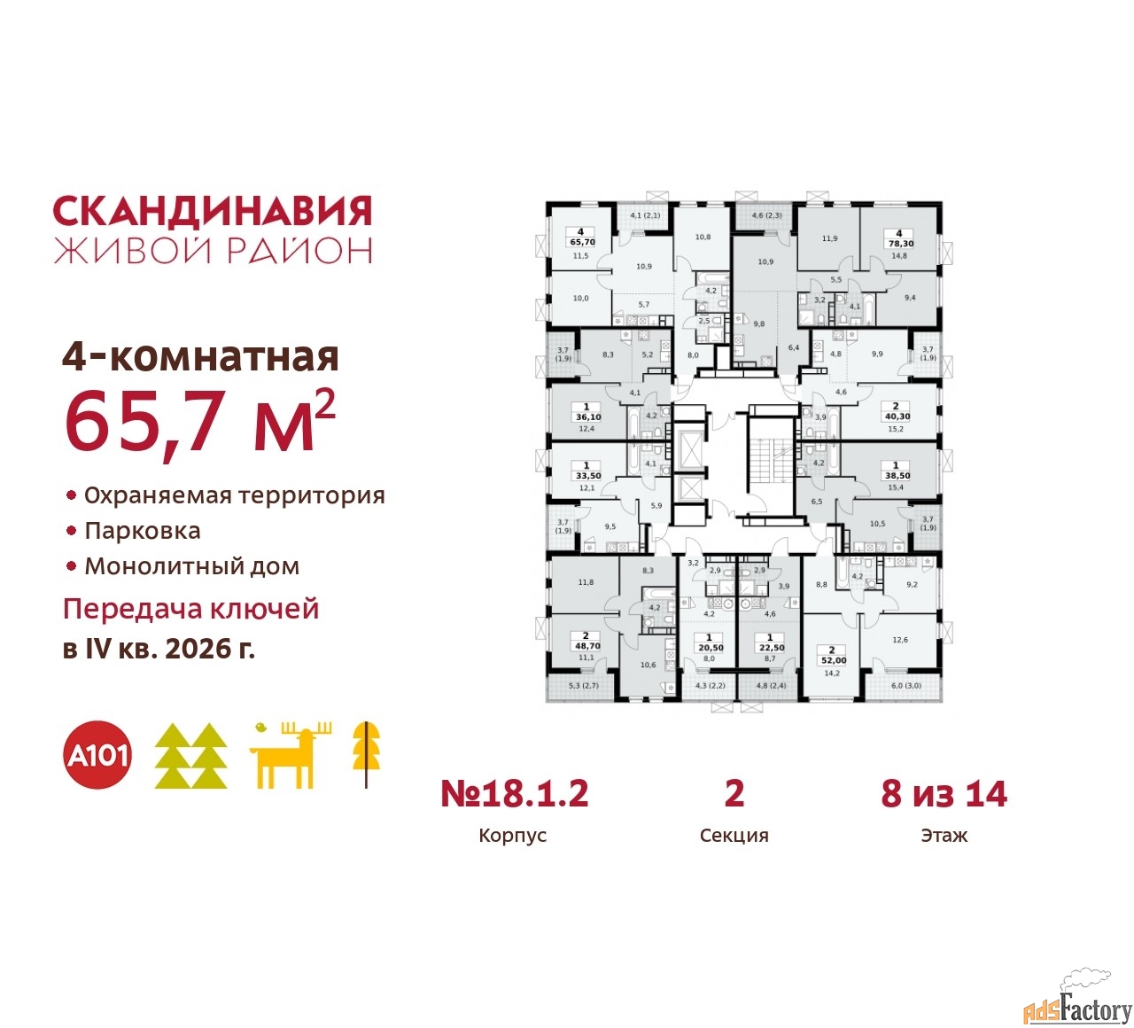 В пешей доступности находятся школы, детские сады, магазины, кафе, поликлиника, спортивная школа, отделение почты, дом культуры и пр. объекты инфраструктуры. ЖК «Скандинавия» находится в 15-минутной доступности до 3 веток метро. Автомобилисты могут воспользоваться выездом на Калужское шоссе (4,7 км). (AQID02350679)