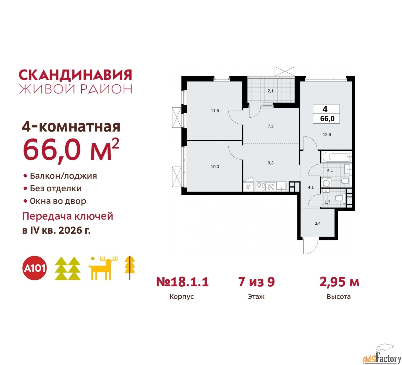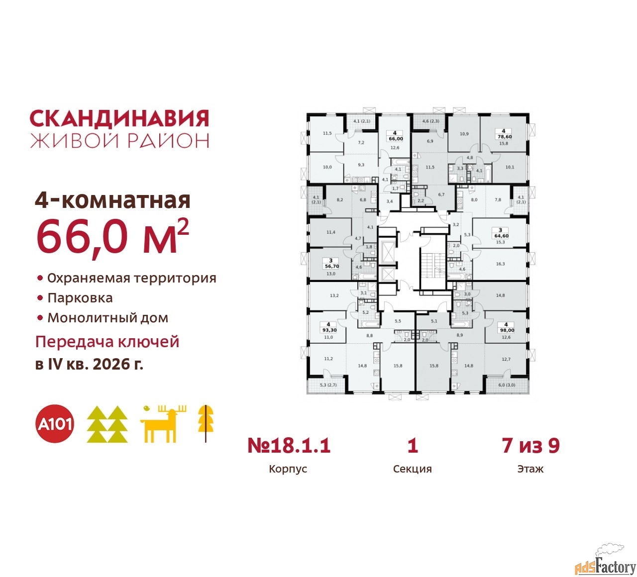 Артикул квартиры по базе застройщика 23К-18.1.1-34.