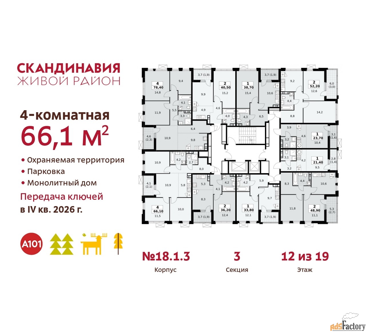 Квартира находится в корпусе 2.18.1.3. Дом монолитный, одноподъездный, высотой 19 этажей. На этаже 10 квартир. В подъезде 1 пассажирский и 1 грузовой лифт. Начало строительства - 1 квартал 2024 года. Окончание строительства - 4 квартал 2026 года. Оформление сделки по договору долевого участия.