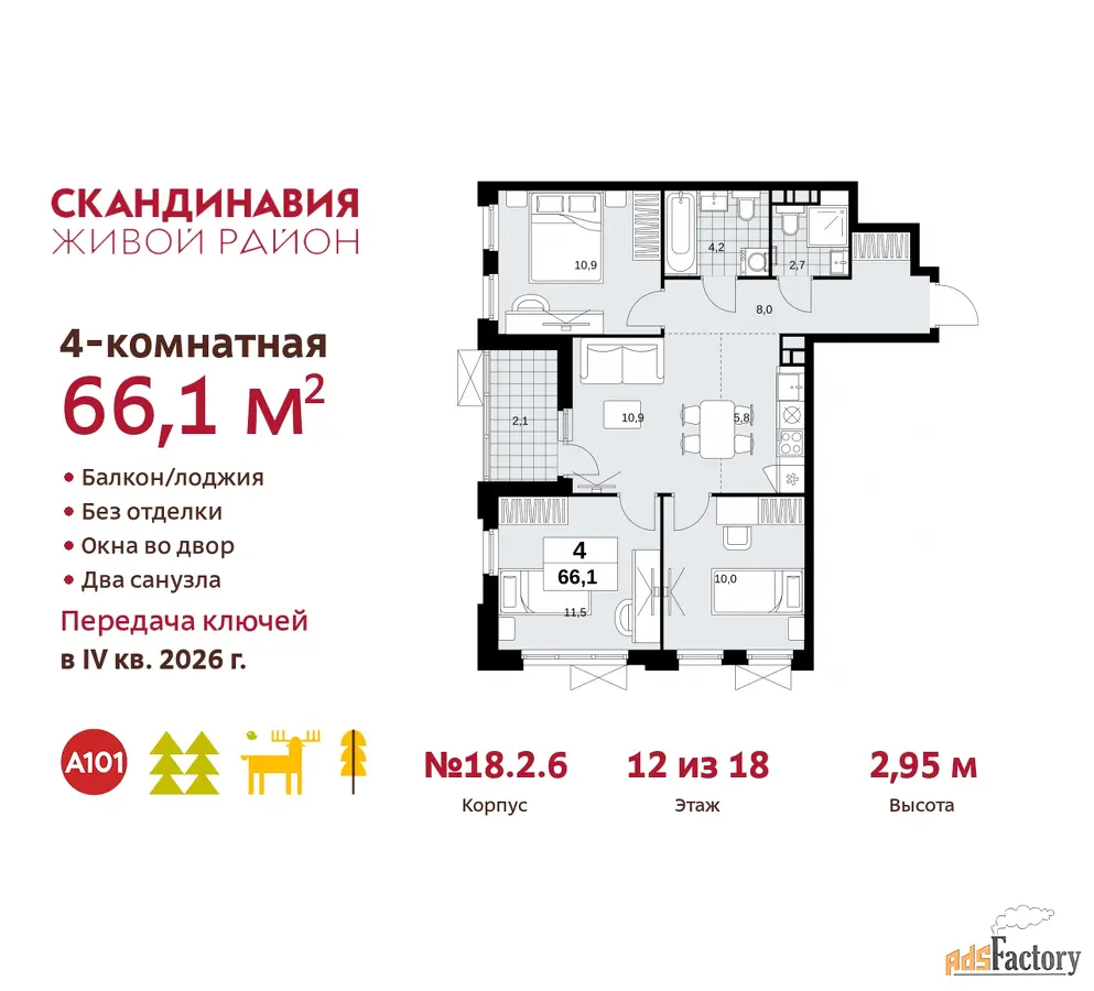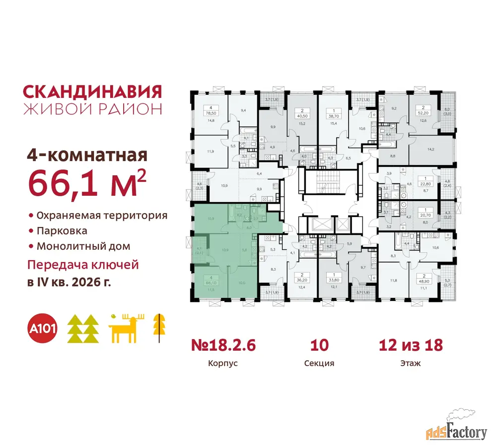 Квартира находится в корпусе 2.18.2.6. Дом монолитный, одноподъездный, высотой 18 этажей. На этаже 8 квартир. В подъезде 1 пассажирский и 1 грузовой лифт. Начало строительства - 1 квартал 2024 года. Окончание строительства - 4 квартал 2026 года. Оформление сделки по договору долевого участия.