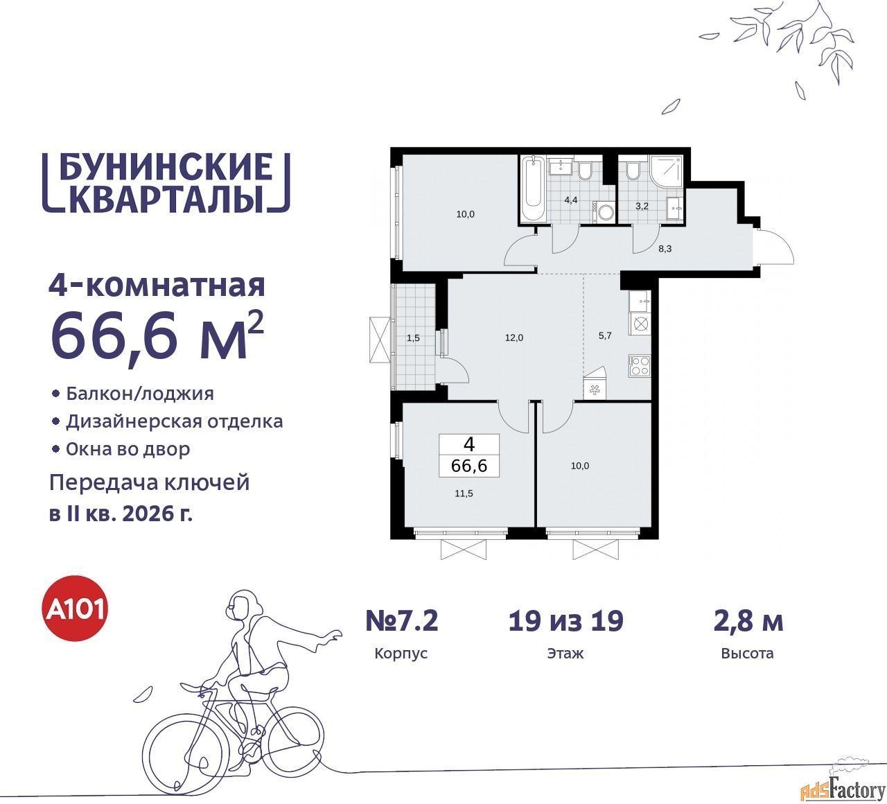| Общая площадь (кв.м) | 66.4 |