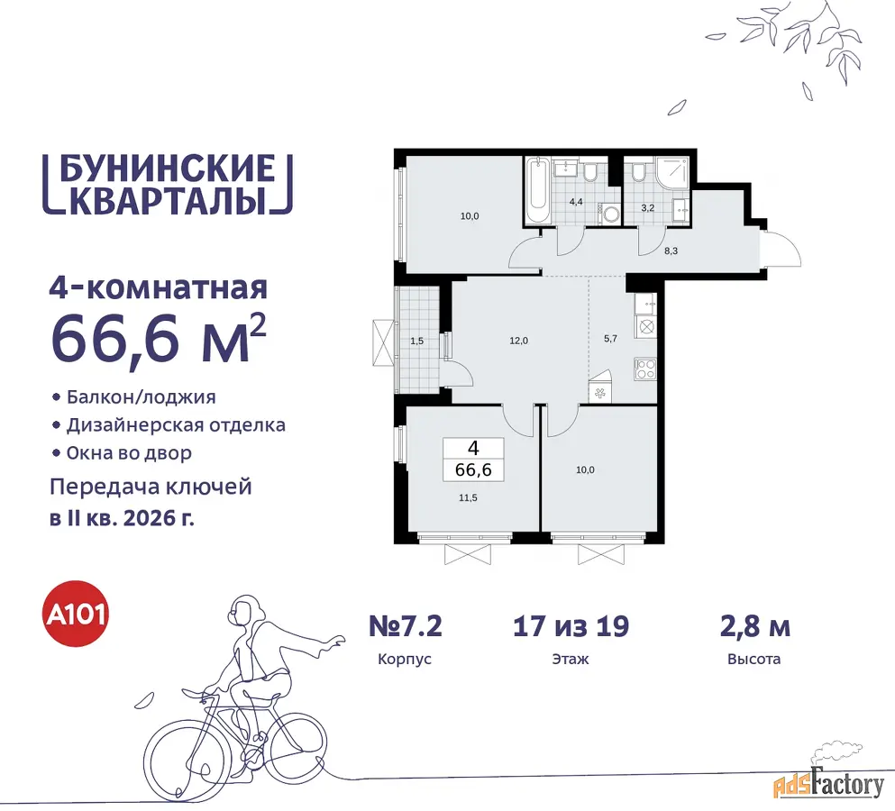 | Общая площадь (кв.м) | 66.4 |