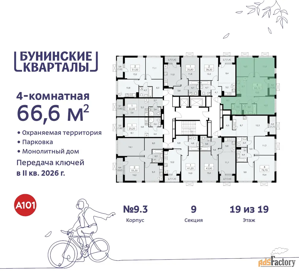 Квартира находится в корпусе 9.3. Дом монолитный, одноподъездный, высотой 19 этажей. На этаже 10 квартир. В подъезде 1 пассажирский и 1 грузовой лифт. Начало строительства - 4 квартал 2023 года. Окончание строительства - 2 квартал 2026 года. Оформление сделки по договору долевого участия.