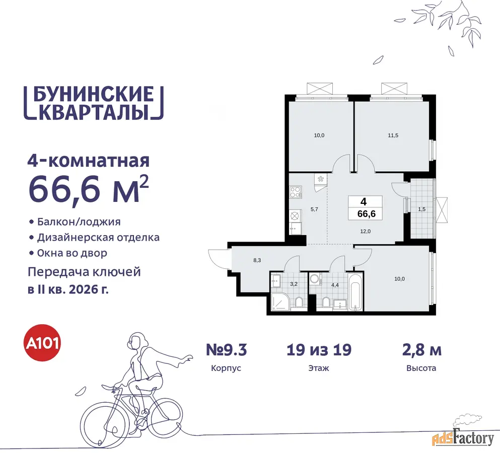 | Общая площадь (кв.м) | 66.6 |