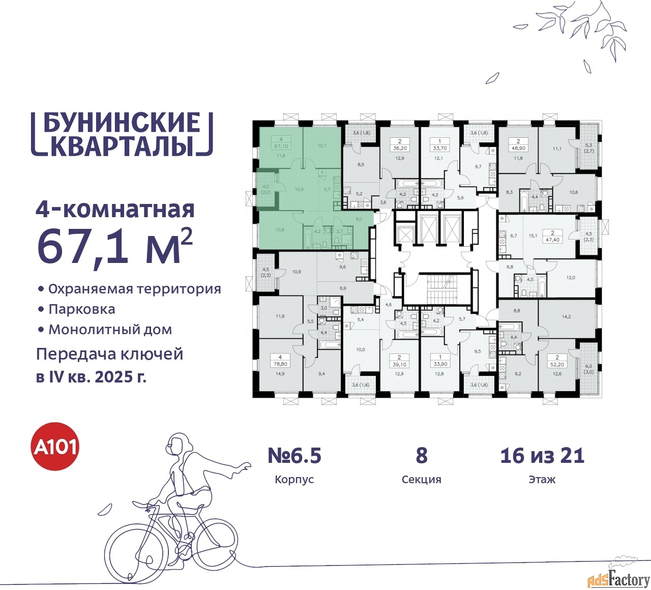 | Этажность здания | 21 |