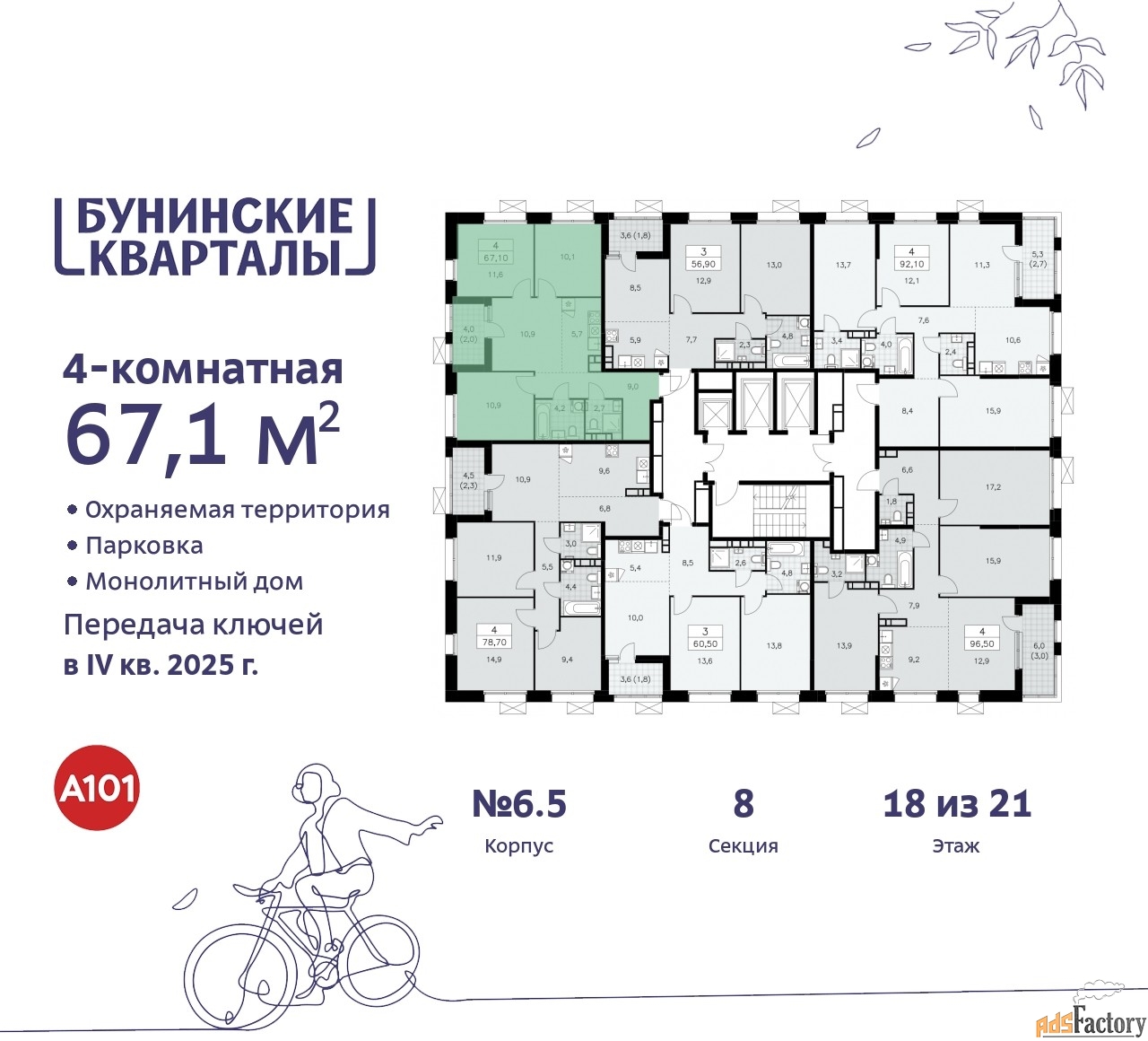 Квартира находится в корпусе 6.5. Дом монолитный, одноподъездный, высотой 21 этаж. На этаже 9 квартир. В подъезде 1 пассажирский и 2 грузовых лифта. Начало строительства - 3 квартал 2023 года. Окончание строительства - 2 квартал 2026 года. Оформление сделки по договору долевого участия.