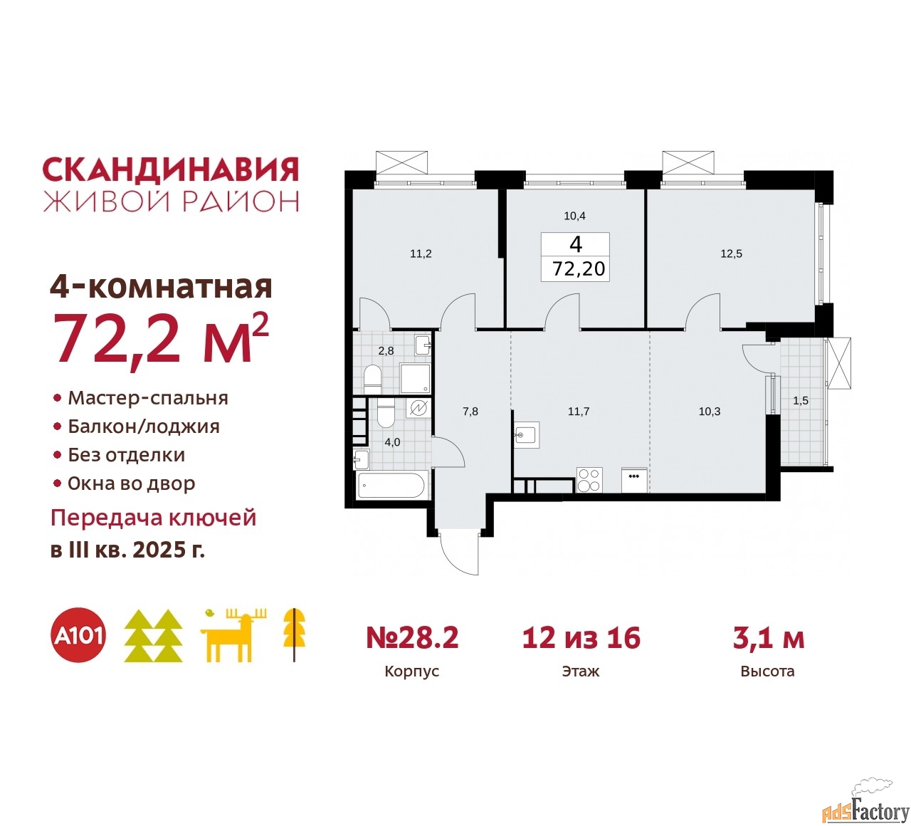 | Общая площадь (кв.м) | 72.2 |