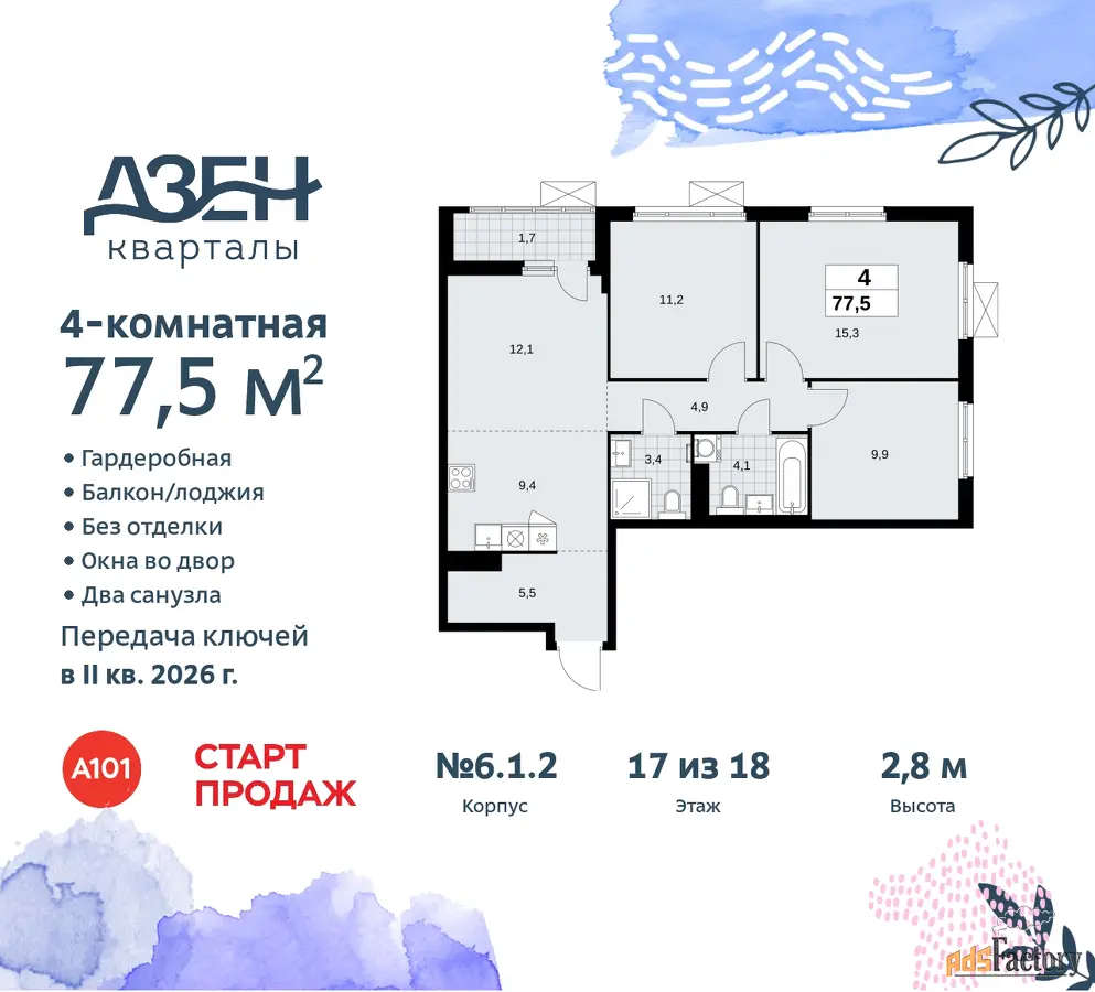 | Общая площадь (кв.м) | 77.5 |