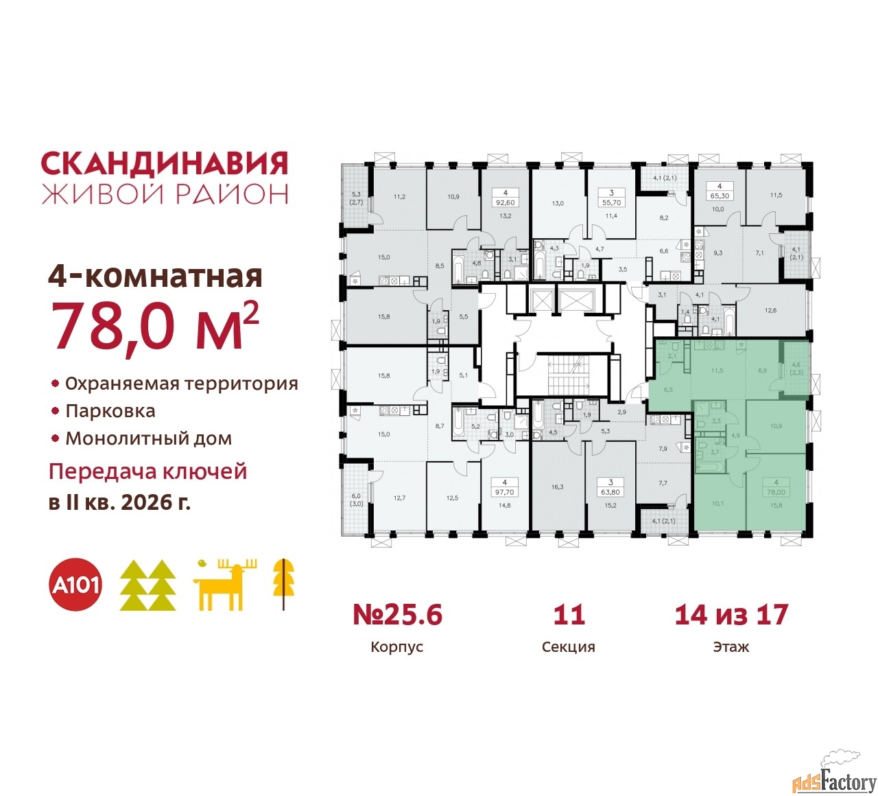 Квартира находится в корпусе 2.25.6. Дом монолитный, одноподъездный, высотой 17 этажей. На этаже 6 квартир. В подъезде 1 пассажирский и 1 грузовой лифт. Начало строительства - 4 квартал 2023 года. Окончание строительства - 2 квартал 2026 года. Оформление сделки по договору долевого участия.