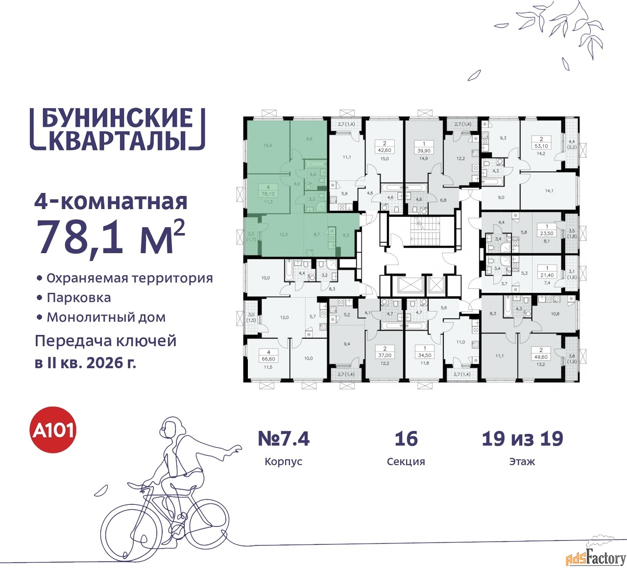 Квартира находится в корпусе 7.4. Дом монолитный, одноподъездный, высотой 19 этажей. На этаже 10 квартир. В подъезде 1 пассажирский и 1 грузовой лифт. Начало строительства - 4 квартал 2023 года. Окончание строительства - 2 квартал 2026 года. Оформление сделки по договору долевого участия.