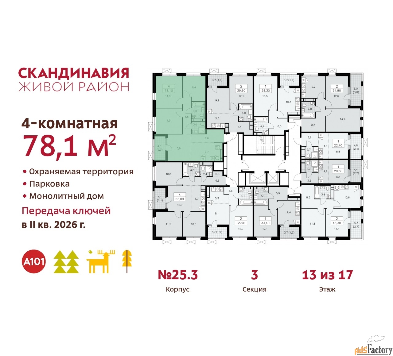 | Общая площадь (кв.м) | 78.1 |