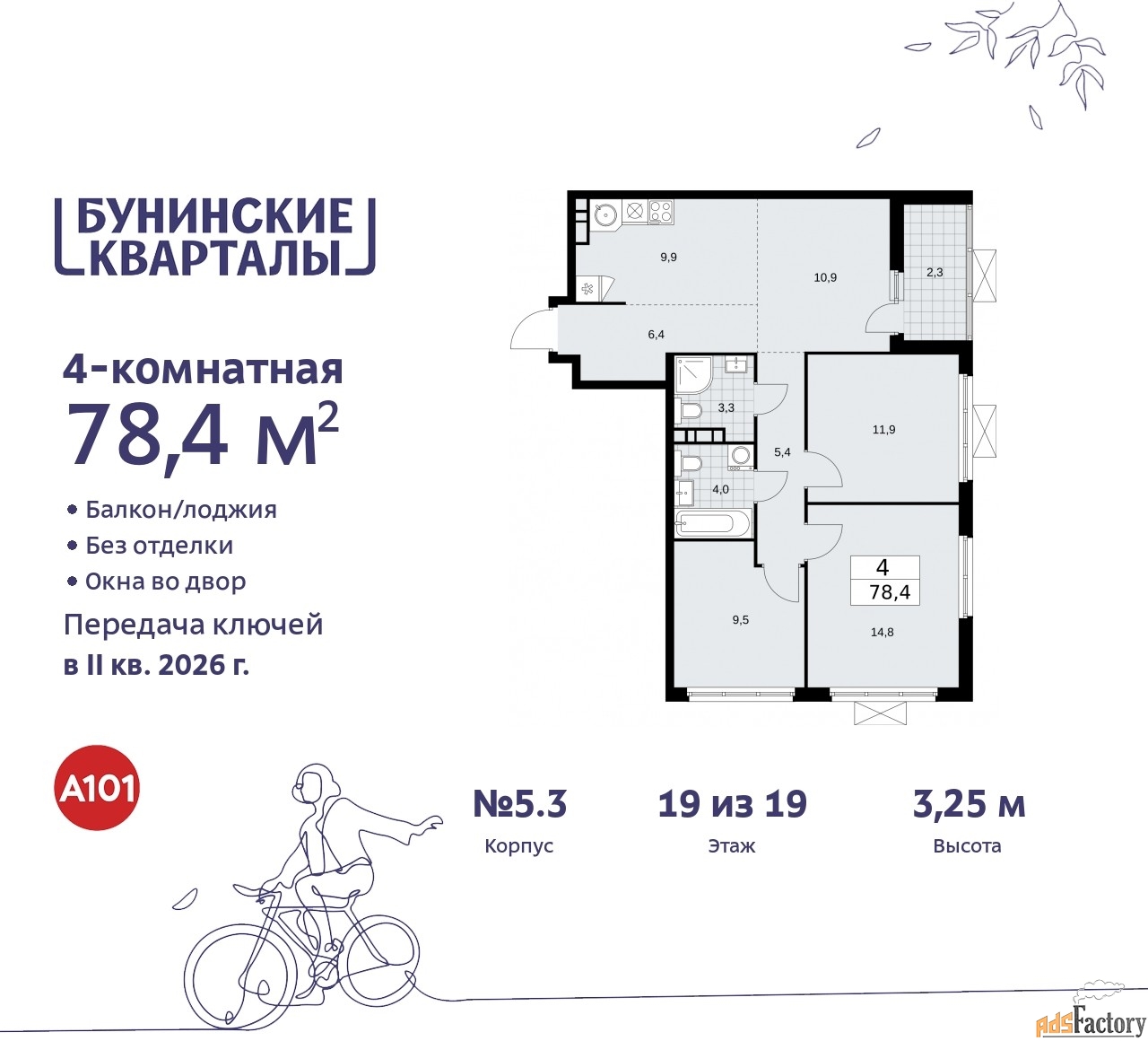 | Общая площадь (кв.м) | 78.4 |
