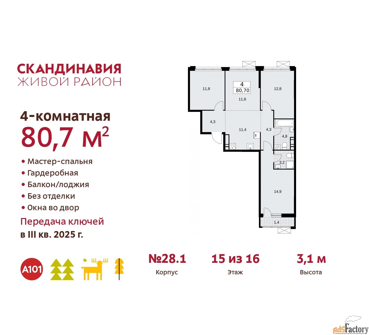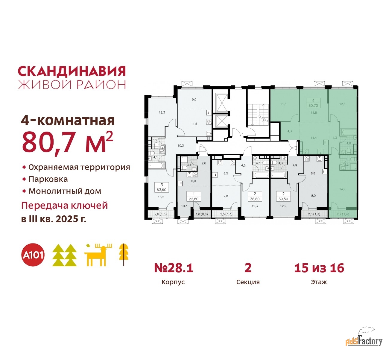 | Общая площадь (кв.м) | 80.7 |