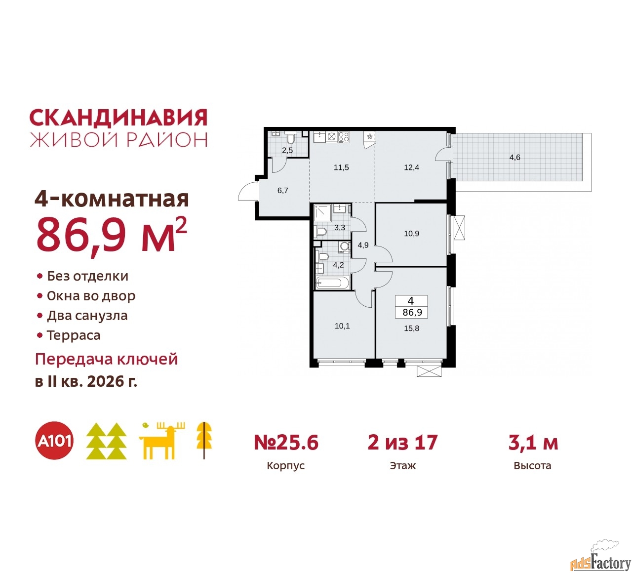 Квартира находится в корпусе 25.6. Дом монолитный, одноподъездный, высотой 17 этажей. На этаже 6 квартир. В подъезде 1 пассажирский и 1 грузовой лифт. Начало строительства - 4 квартал 2023 года. Окончание строительства - 2 квартал 2026 года. Оформление сделки по договору долевого участия.