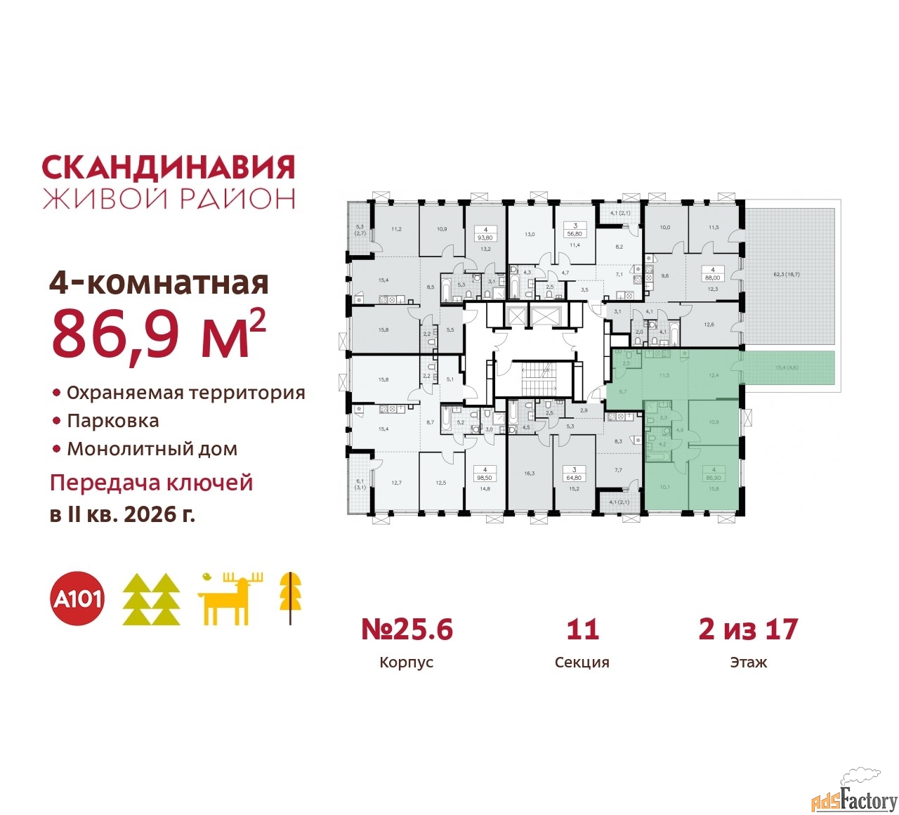 Квартира находится в корпусе 25.6. Дом монолитный, одноподъездный, высотой 17 этажей. На этаже 6 квартир. В подъезде 1 пассажирский и 1 грузовой лифт. Начало строительства - 4 квартал 2023 года. Окончание строительства - 2 квартал 2026 года. Оформление сделки по договору долевого участия.