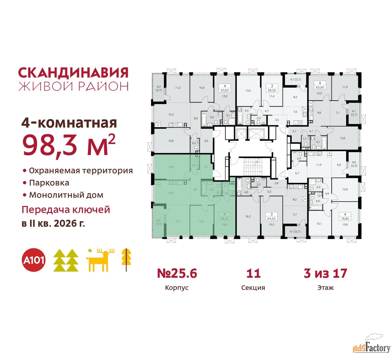 Часть корпусов микрорайона «Скандинавия» уже заселены, полностью сформирована вся инфраструктура: больницы, детские сады, школы, магазины. Отличительная особенность жилого комплекса - невысокие дома, просторные дворы без машин, комфортная благоустроенная придомовая территория. (AQID02284245)