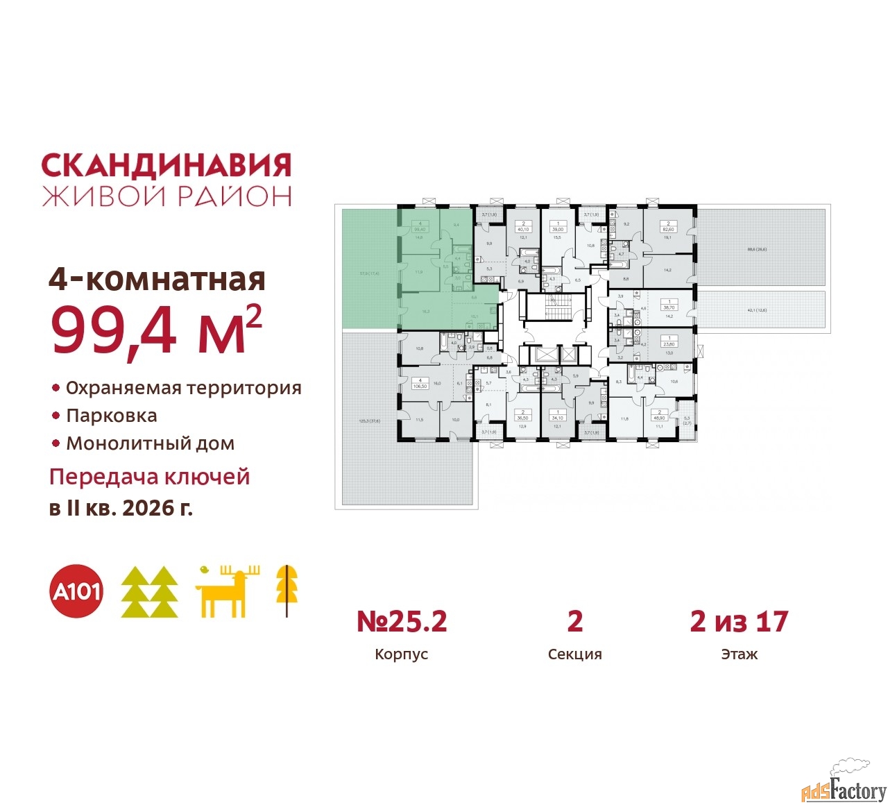 Артикул квартиры по базе застройщика 24К-25.2-152.