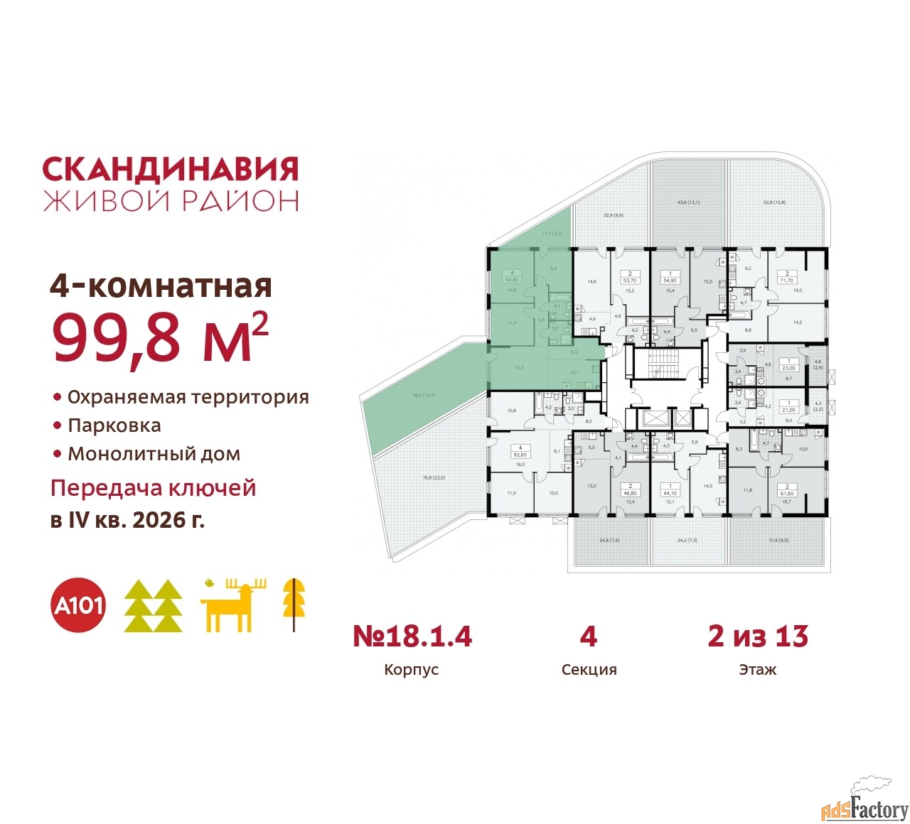 | Общая площадь (кв.м) | 99.8 |