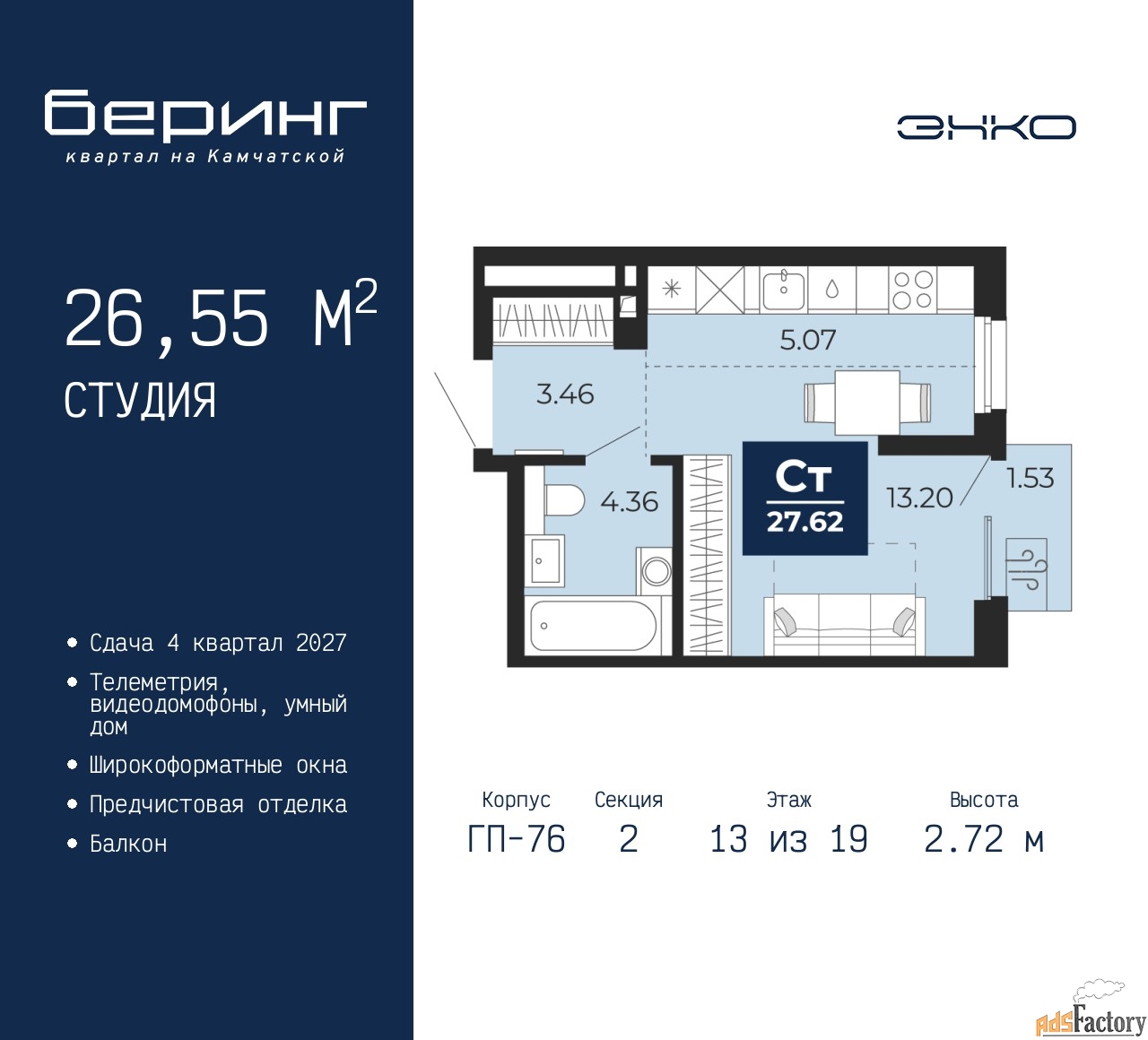 | Общая площадь (кв.м) | 26.55 |