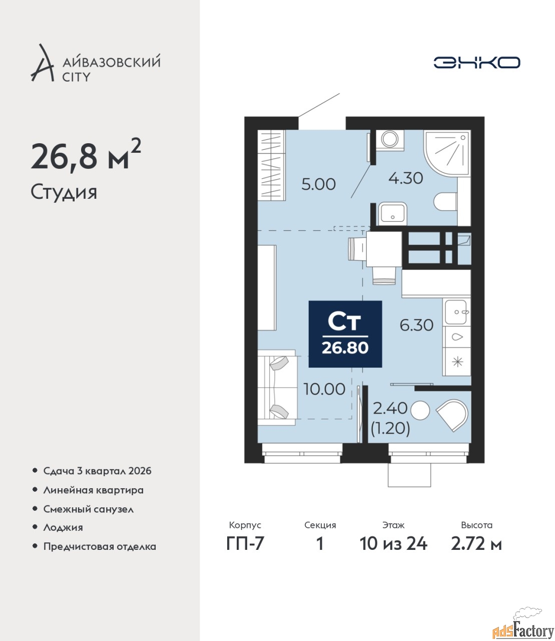 | Общая площадь (кв.м) | 26.8 |