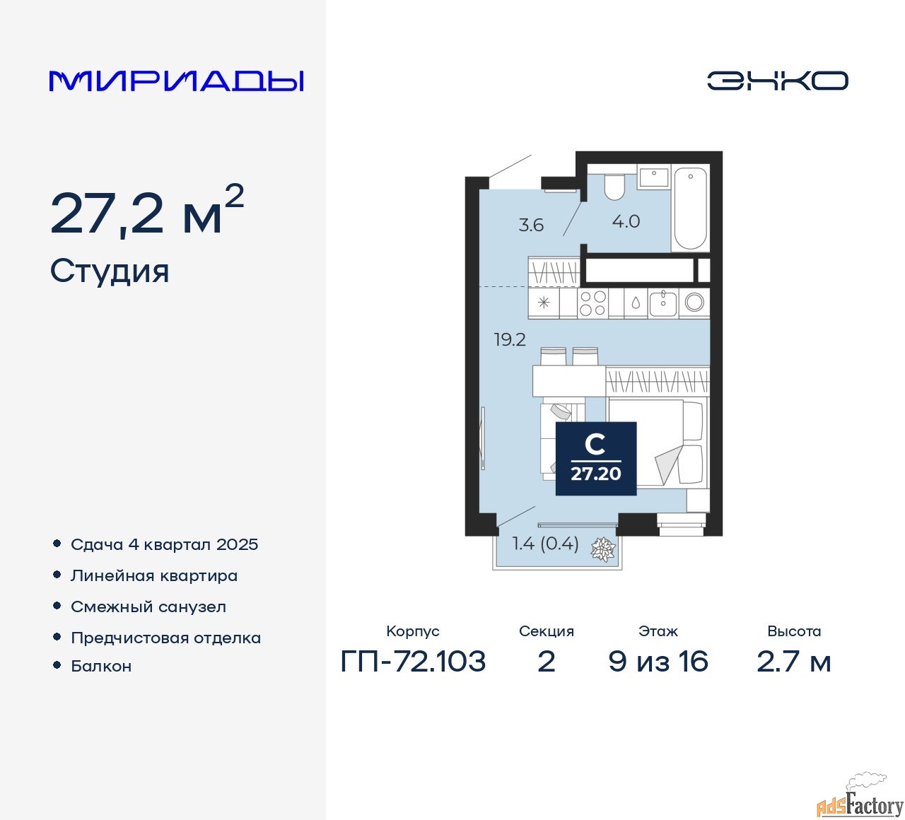 | Общая площадь (кв.м) | 27.2 |