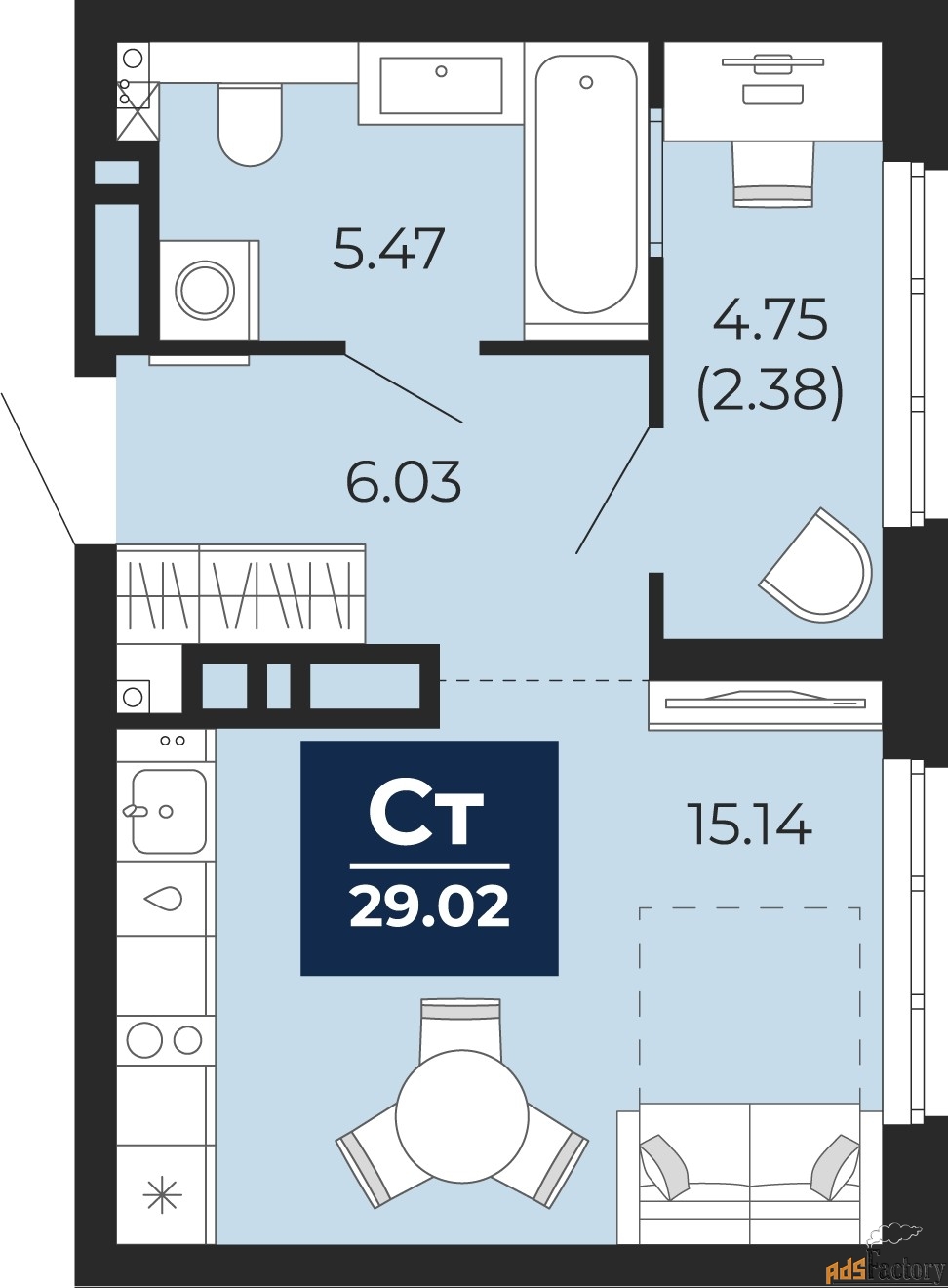 | Общая площадь (кв.м) | 29.02 |