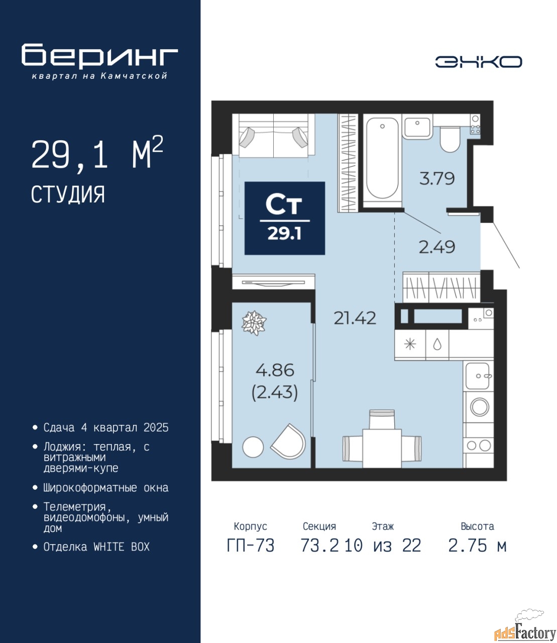 | Общая площадь (кв.м) | 29.1 |