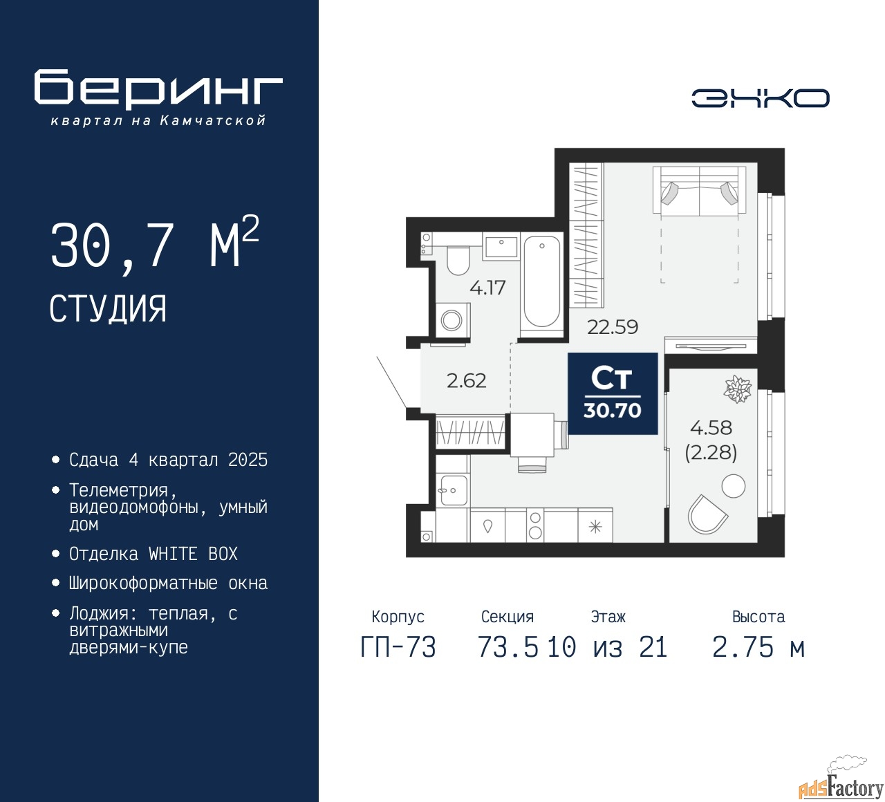 Дом монолитный, многоподъездный, переменной этажности, от 9 до 22 этажей. Квартира находится в 73.5-й секции высотой 21 этаж в корпусе ГП-73. На этаже 6 квартир. В подъезде 1 пассажирский и 1 грузовой лифт. Окончание строительства - 4 квартал 2025 года. Оформление сделки по договору долевого участия.