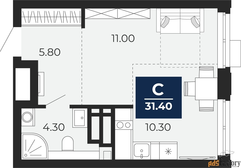 | Общая площадь (кв.м) | 31.4 |