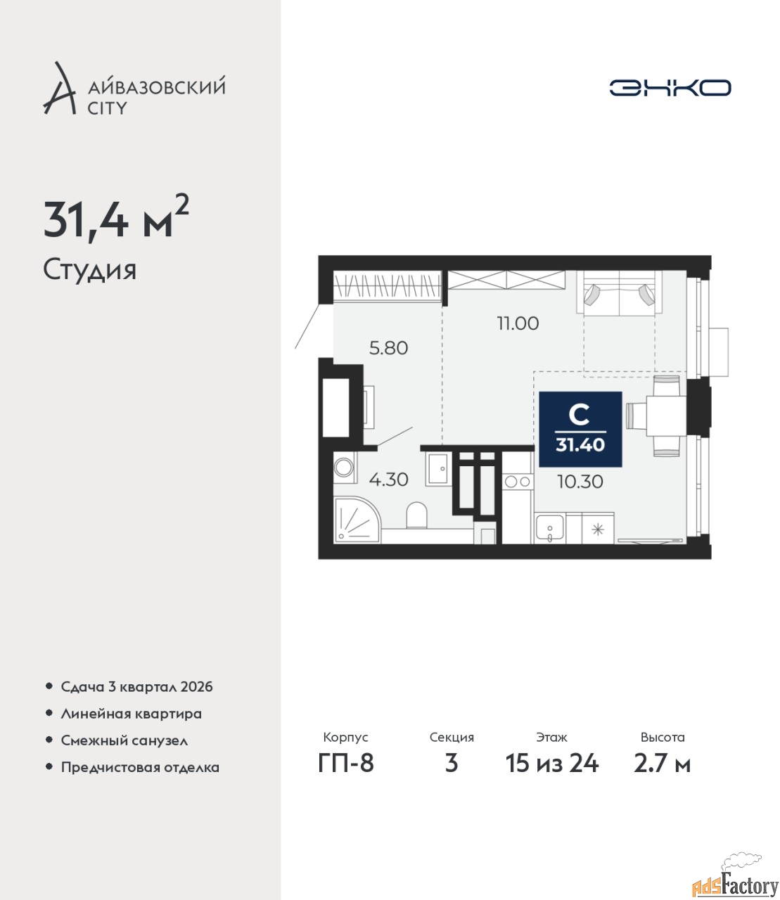 | Общая площадь (кв.м) | 31.4 |