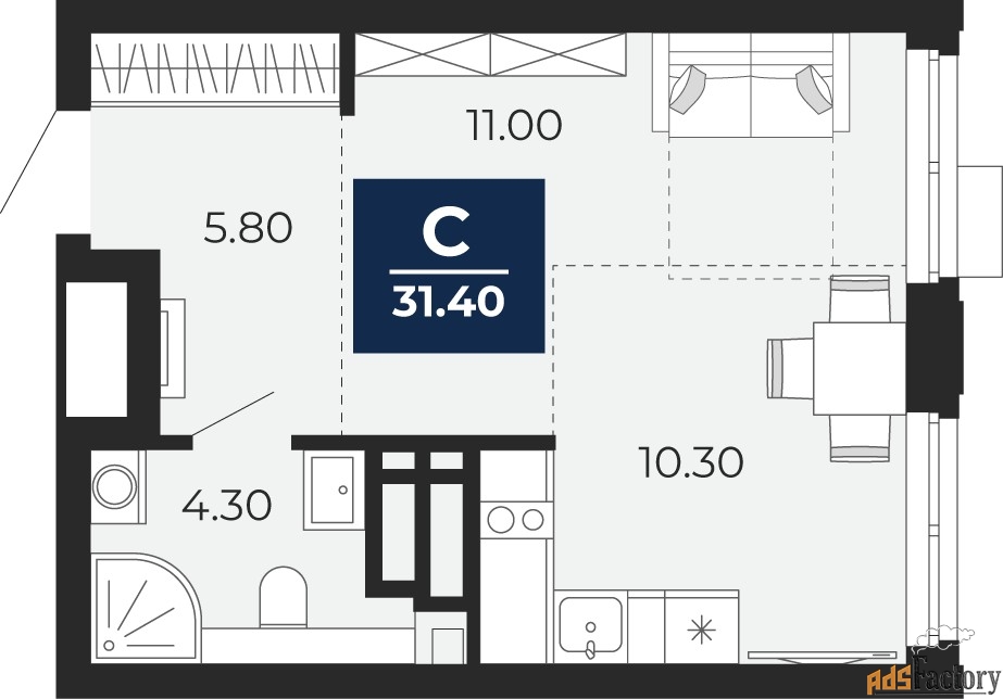 | Общая площадь (кв.м) | 31.4 |