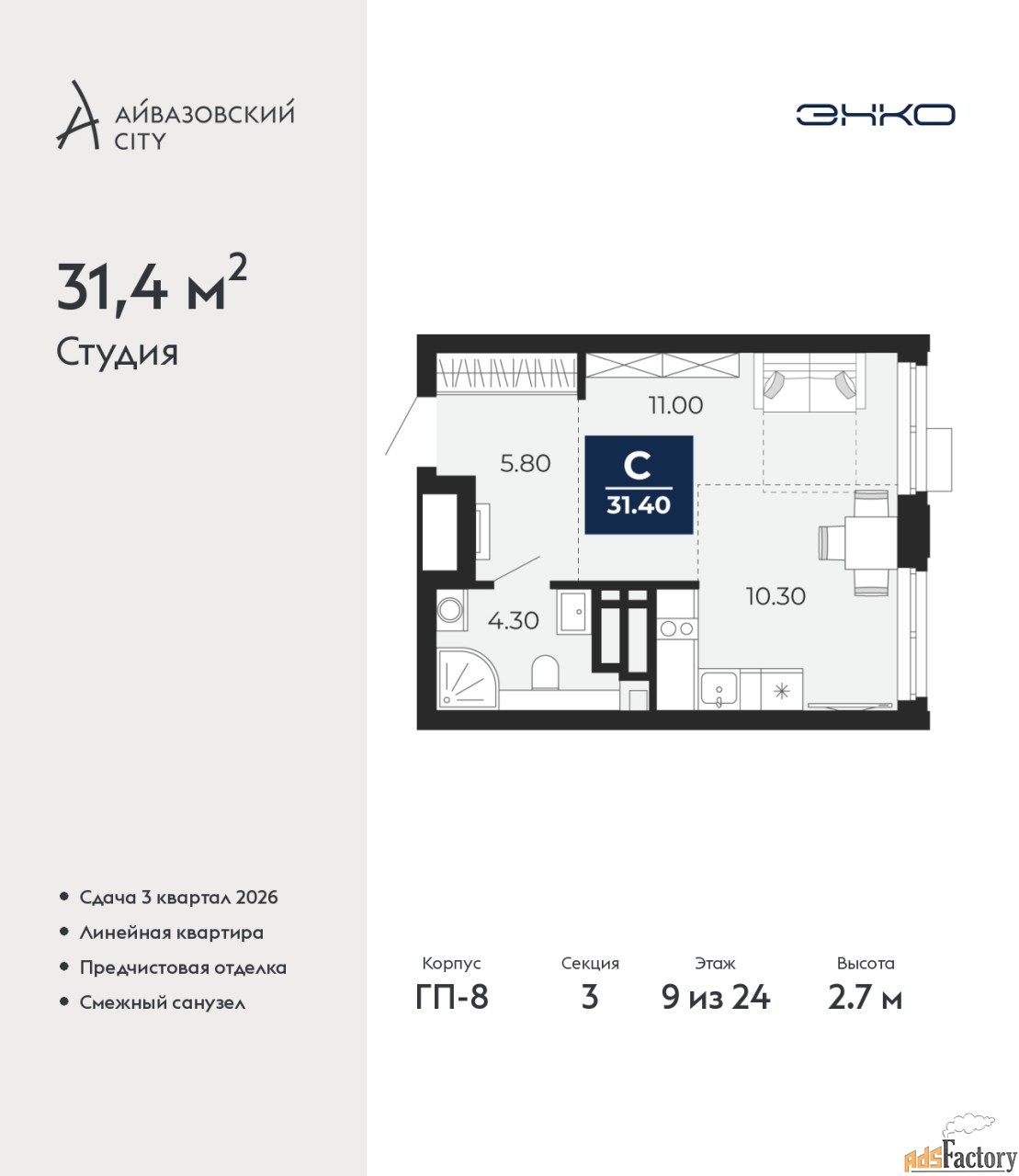 Дом монолитный, многоподъездный, переменной этажности, от 14 до 24 этажей. Квартира находится в 3-й секции высотой 24 этажа в корпусе ГП-8. На этаже 7 квартир. В подъезде 1 пассажирский и 1 грузовой лифт. Окончание строительства - 3 квартал 2026 года. Оформление сделки по договору долевого участия.