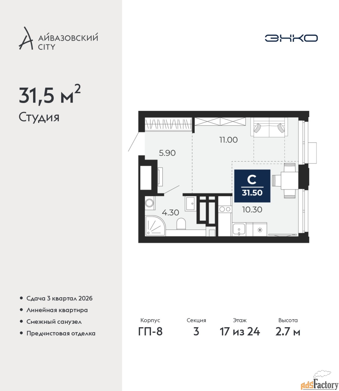 | Общая площадь (кв.м) | 31.5 |