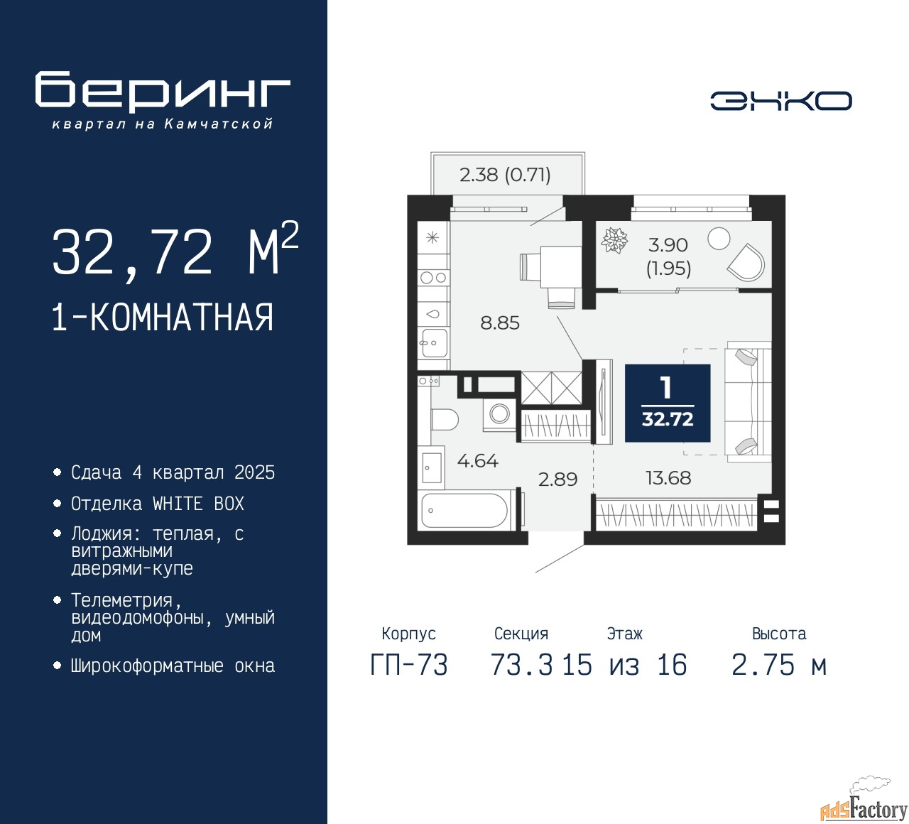 | Общая площадь (кв.м) | 32.72 |