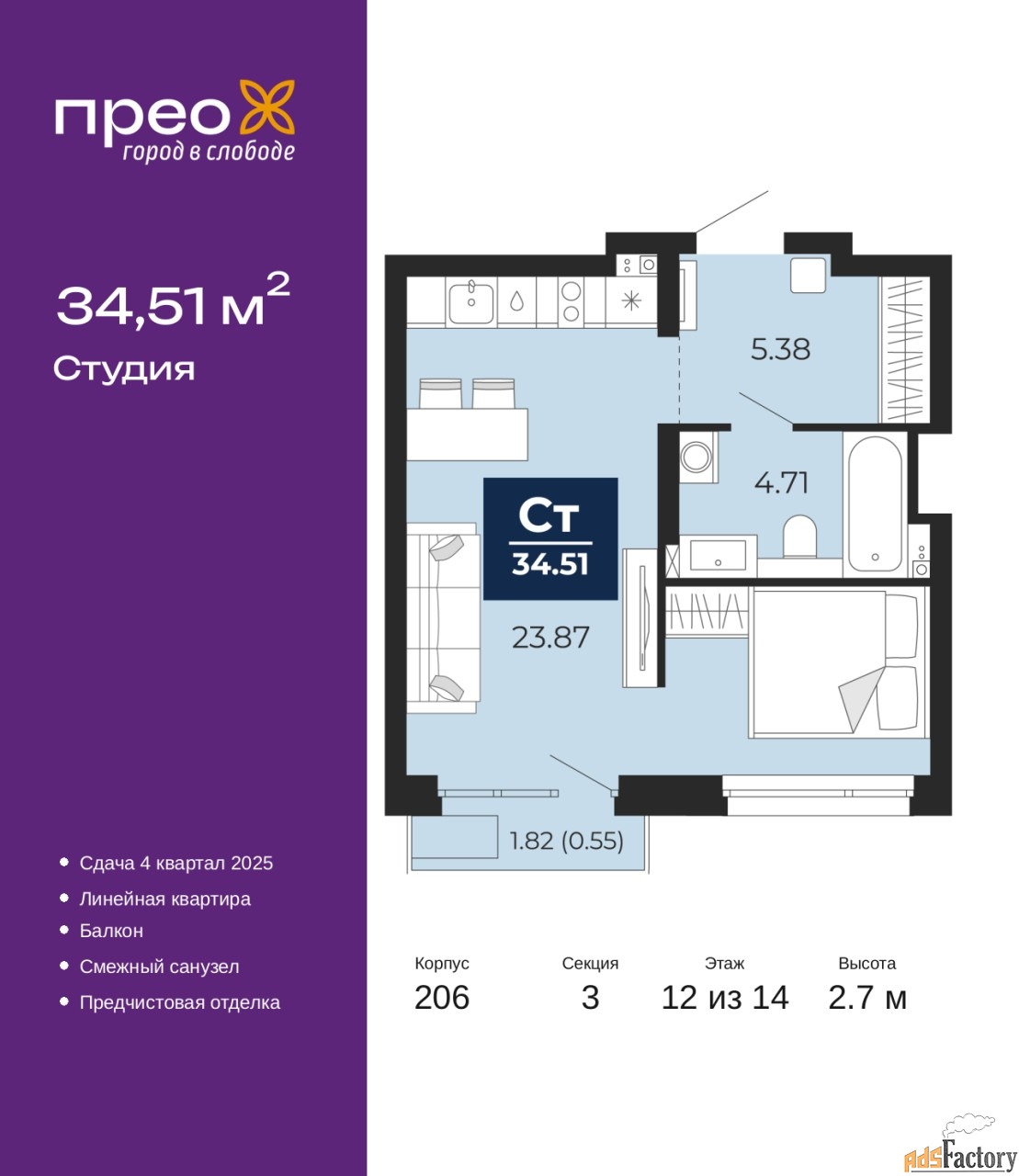 Дом монолитный, трехподъездный, переменной этажности, от 14 до 23 этажей. Квартира находится в 3-й секции высотой 14 этажей в корпусе 206. На этаже 6 квартир. В подъезде 1 пассажирский и 1 грузовой лифт. Окончание строительства - 1 квартал 2026 года. Оформление сделки по договору долевого участия.